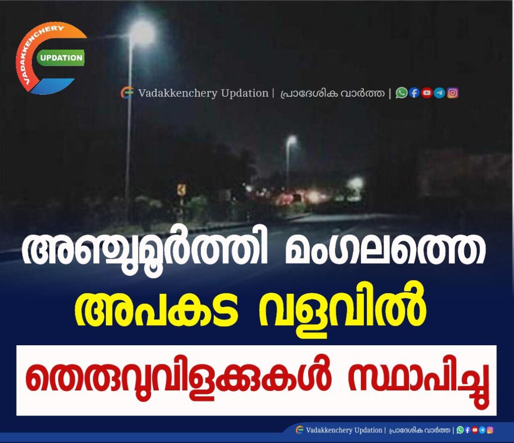 വടക്കഞ്ചേരി ദേശീയപാത യിൽ ഒൻപതുപേരുടെ മരണ ത്തിനിടയാക്കിയ ബസ് അപ കടം നടന്ന അഞ്ചുമൂർത്തിമം ഗലത്ത് രണ്ട് വർഷത്തെ കാ ത്തിരിപ്പിനൊടുവിൽ ദേശീയ പാതാ അതോറിറ്റി രണ്ട് തെ രുവുവിളക്കുകൾ സ്ഥാപിച്ചു. 2022 ഒക്ടോബർ അഞ്ചിന് രാത്രി അഞ്ചുമൂർത്തിമംഗലം കൊല്ലത്തറ ബസ് സ്റ്റോപ്പിന് സമീപമുള്ള വളവിൽ കെ.എ സ്.ആർ.ടി.സി ബസിൻ്റെ പി ന്നിൽ ടൂറിസ്റ്റ് ബസിടിച്ച് അപകടം ഉണ്ടായത്.
