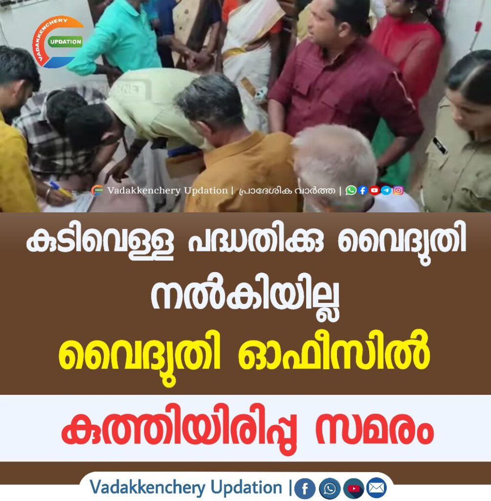 വടക്കഞ്ചേരി വാല്ക്കുളമ്ബിനടുത്ത് പാറച്ചാട്ടം കൊട്ടടിയില് നിർമാണപ്രവൃത്തികള് പൂർത്തീകരിച്ച കുടിവെള്ള പദ്ധതിക്കായി വൈദ്യുതി കണക്ഷൻ നല്കാൻ വൈകുന്നതില് പ്രതിഷേധിച്ച് കൊടുമ്ബാലയിലെ ആദിവാസികള് ഉള്പ്പെടെയുള്ള നാട്ടുകാർ കിഴക്കഞ്ചേരിയിലെ കെഎസ്ഇബി ഓഫീസില് ഇന്നലെ മണിക്കൂറുകളേറെ കുത്തിയിരിപ്പു സമരം നടത്തി.പദ്ധതിയുടെ ഓരോ പ്രവൃത്തി കഴിയുമ്ബോഴും പുതിയ നിയമ തടസങ്ങളും സുരക്ഷയും പറഞ്ഞ് വൈദ്യുതി കണക്ഷൻ നല്കുന്നത് വൈകിപ്പിക്കുകയും അത് തങ്ങളുടെ കുടിവെള്ളത്തെ ഇല്ലാതാക്കുകയും ചെയ്യുന്ന നിലപാടാണ് കെഎസ്ഇബി അധികൃതർ സ്വീകരിക്കുന്നതെന്നായിരുന്നു നാട്ടുകാരുടെ ആരോപണം. രാവിലെ പത്തരയോടെയാണ് പഞ്ചായത്ത് മെംബർ പോപ്പി ജോണിന്റെ നേതൃത്വത്തില് നാട്ടുകാർ കരുമനശേരിയിലുളള കെഎസ്ഇബി ഓഫീസിലെത്തിയത്. ഈ സമയം അസിസ്റ്റന്റ് എൻജിനീയർ ഉള്പ്പെടെ ഉത്തരവാദപ്പെട്ട ഉദ്യോഗസ്ഥർ ആരും ഓഫീസില് ഉണ്ടായിരുന്നില്ല. ഇത് നാട്ടുകാരെ ചൊടിപ്പിച്ചു. എക്സിക്യൂട്ടീവ് എൻജിനീയർ ഉള്പ്പെടെ സ്ഥലത്തെത്തി പ്രശ്നത്തിന് ഉടനടി പരിഹാരം കാണണമെന്ന നിലപാടില് നാട്ടുകാർ ഉറച്ചു നിന്നു. ഇതിനിടെ ഓഫീസിലെ ജീവനക്കാർ തമ്മില് വാഗ്വാദങ്ങളുമുണ്ടായി. തുടർന്ന് സ്ത്രീകള് ഓഫീസിനുള്ളിലും പുറത്തുമായി കുത്തിയിരിപ്പ് സമരം ആരംഭിച്ചു.വിവരമറിഞ്ഞ് ഉച്ചയോടെ അസിസ്റ്റന്റ് എക്സിക്യൂട്ടീവ് എൻജിനീയർ ആശ, എഇ ബിജോയ്, കരാറുകാർ തുടങ്ങിയവർ സ്ഥലത്തെത്തി. പഞ്ചായത്ത് വൈസ് പ്രസിഡന്റ് എസ്. രാധാകൃഷ്ണന്റെ നേതൃത്വത്തില് മറ്റു ജനപ്രതിനിധികളും രാഷ്ട്രീയപാർട്ടി നേതാക്കളും കൊടുമ്ബാല ആദിവാസി കോളനിയിലെ മൂപ്പൻ വാസു, ഉണ്ണികൃഷ്ണൻ, ഓമനക്കുട്ടൻ മാസ്റ്റർ തുടങ്ങിയവർ സ്ഥലത്തെത്തി.