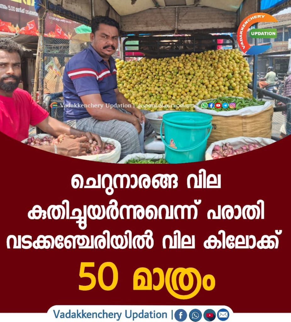 ചൂട് കടുക്കുകയും നോമ്പുകാലം തുടങ്ങുകയും ചെയ്തതോടെ ചെറുനാരങ്ങ വില റോക്കറ്റ് വേഗത്തില് കുതിക്കുന്നുവെന്ന പരാതി വ്യാപകമാണ്. എന്നാൽ ചെറുനാരങ്ങക്ക് വടക്കഞ്ചേരിയിൽ വില കിലോക്ക് 50 മാത്രം