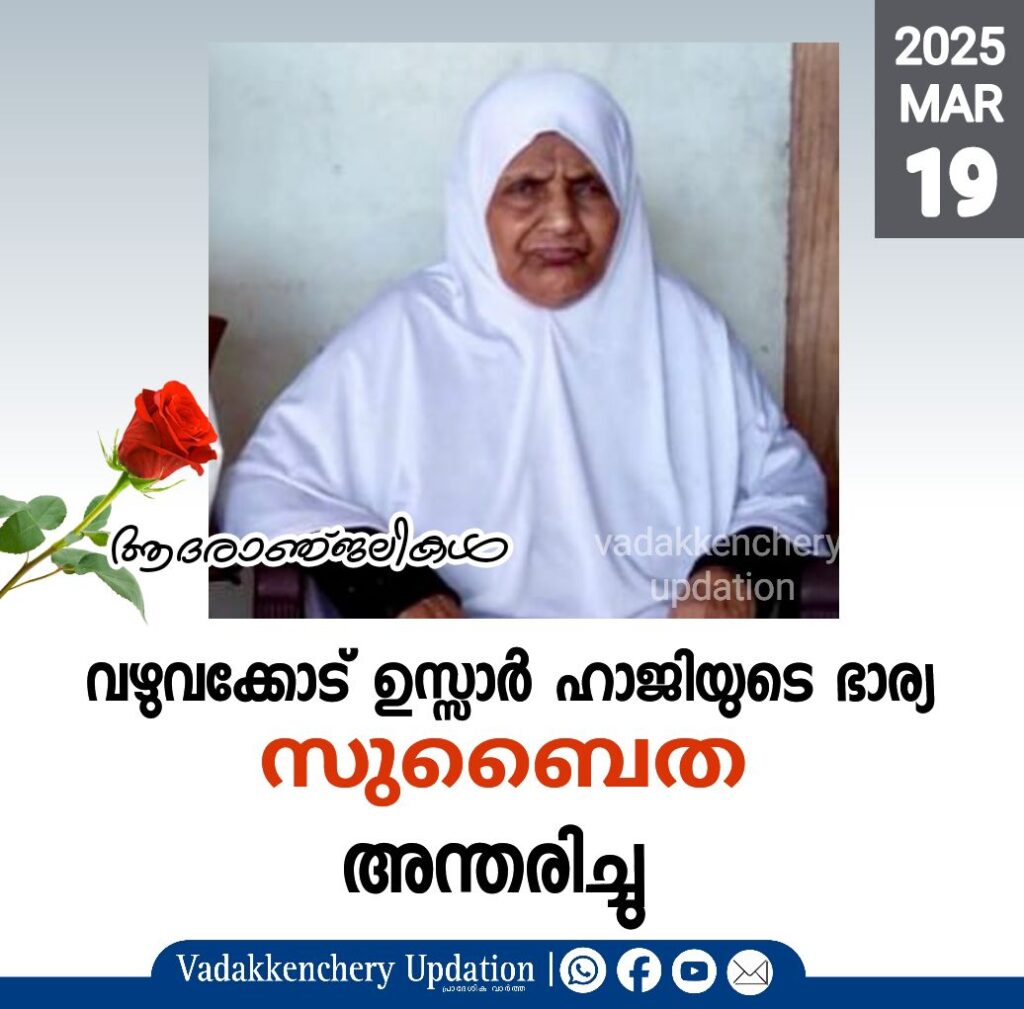വഴുവക്കോട് ഉസ്സാർ ഹാജി( late)യുടെ ഭാര്യ സുബൈത (ഹജ്ജുമ്മ) അന്തരിച്ചു.
