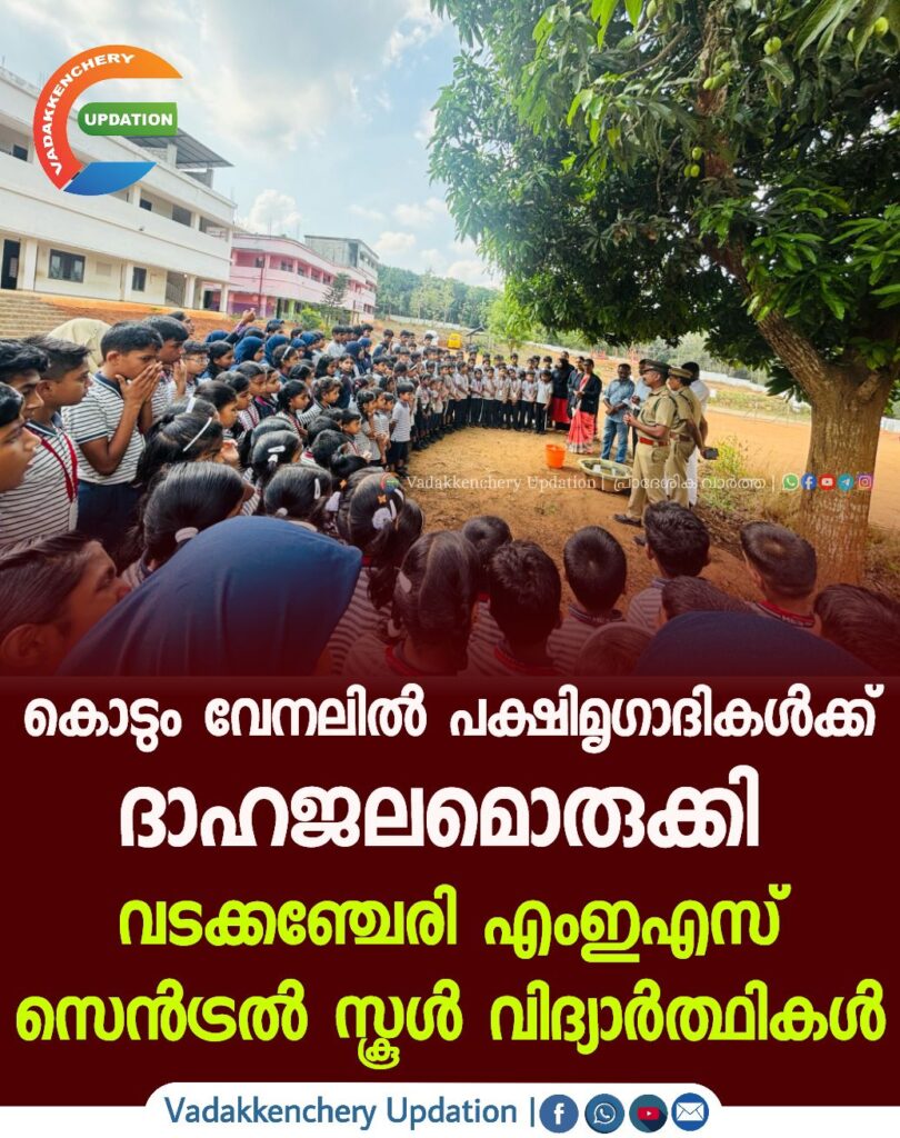 സംസ്ഥാന വ്യാപകമായി പക്ഷിമൃഗാതികൾക്ക് കുടിവെള്ളമൊരുക്കുന്ന പദ്ധതിയുടെ ഭാഗമായി വടക്കഞ്ചേരി എംഇഎസ് സെൻട്രൽ സ്കൂൾ വിദ്യാർത്ഥികൾ ഒരുക്കിയ