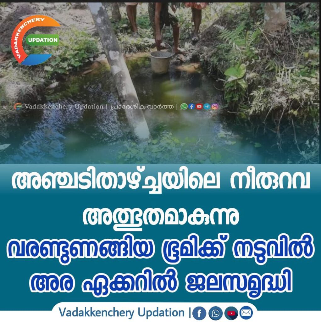 വടക്കഞ്ചേരി ;പടങ്ങിട്ടതോട് വറ്റിവരണ്ടു കിടക്കുമ്പോൾ തൊട്ടടുത്ത കുന്നിൻ മുകളിൽ അഞ്ചടിതാഴ്ച്ചയിലെ നീരുറവ അത്ഭുതമാകുന്നു.