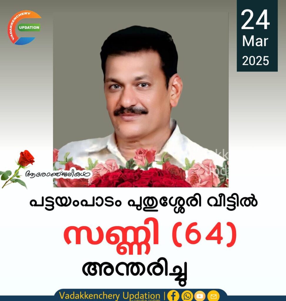 കിഴക്കഞ്ചേരി പട്ടയംപാടം പുതുശ്ശേരി വീട്ടിൽ പി എസ് വർഗീസ് (സണ്ണി 64) അന്തരിച്ചു.