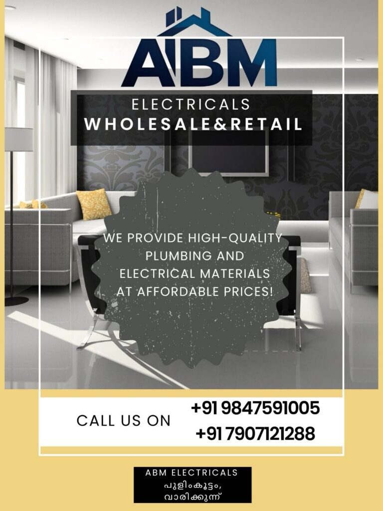 เดชเตเดณเดฟเดเดเตเดเตเดเด, เดตเดพเดฐเดฟเดเตเดเตเดจเตเดจเต เดธเตเดฅเดฟเดคเดฟ เดเตเดฏเตเดฏเตเดจเตเดจ *ABM Electricals* เดเดจเตเดจ เดธเตเดฅเดพเดชเดจเด wholesale divison เดเดฐเดเดญเดฟเดเตเดเตเดจเตเดจเต, เดตเดฟเดฒ เดเตเดฑเดตเดฟเตฝ เดฎเตเดฑเตเดฑเตเดฐเดฟเดฏเตฝเดธเต เดตเดพเดเตเดเดพเตป เดเดจเดฟ เดตเตเดฑเตเดตเดฟเดเตเดฏเตเด เดชเตเดเดฃเตเด. ABM เดฒเตเดเตเดเต เดตเดฟเดณเดฟเดเตเดเต เดเตผเดกเตผ เดชเดฑเดฏเตโฆโฆ.เดธเดพเดงเดจเดเตเดเตพ เดเดจเดฟ เดจเดฟเดเตเดเดณเตเดเต เดชเดฃเดฟ เดธเตเดฅเดฒเดคเตเดคเต เดเดคเตเดคเตเดโฆเด