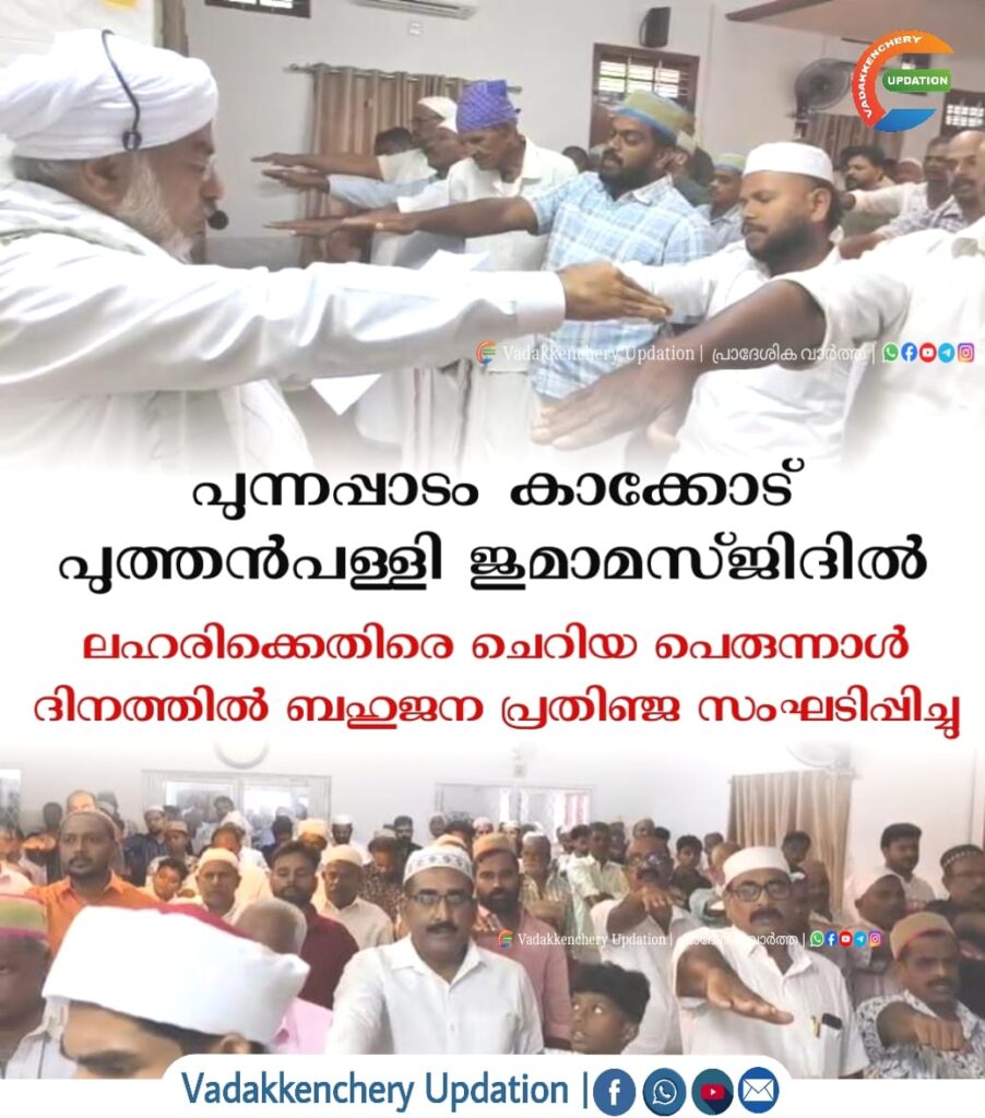 ബഹുജന പ്രതിജ്ഞ സംഘടിപ്പിച്ചു. മഹല്ല് ഖത്തീബ് അബ്ദുറഹ്മാൻ സഹതി ഇന്ന് സമൂഹത്തെ കാർന്നു തിന്നുന്ന ലഹരിക്കെതിരെ ഉൽബോധന പ്രസംഗം നടത്തി .ശാഖാ കമ്മിറ്റികളുടെ നേതൃത്വത്തിൽ നടന്ന ബഹുജന പ്രതിജ്ഞക്ക് മഹലിലെ സീനിയർ നേതാക്കൾ, മഹല്ല് പ്രസിഡൻറ് അബ്ബാസ് സെക്രട്ടറി റിയാസ് റാഡോ ,മറ്റ് കമ്മിറ്റി ഭാരവാഹികൾ, ഉസ്താദ് മാർ സമസ്ത കീഴ്ഘടകങ്ങളുടെ നേതാക്കൾ തുടങ്ങിയവർ പങ്കെടുത്തു .ഖത്തീബ് അബ്ദുറഹ്മാൻ സഹതി പ്രതിജ്ഞ ചെല്ലി കൊടുത്തു. ആഘോഷ ദിനത്തിൽ മഹല്ലിലെ മുഴുവൻ ജനങ്ങളും ഒരുമിച്ച് കൂടി ലഹരിയെന്ന മഹാ വിപത്തിനെതിരെയുള്ള