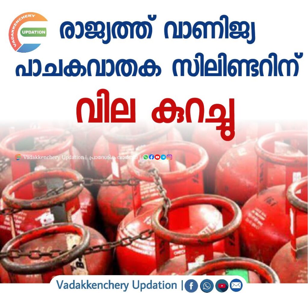 രാജ്യത്ത് വാണിജ്യ ആവശ്യങ്ങൾക്കുള്ള ഗ്യാസ് സിലണ്ടറുകളുടെ വില കുറച്ചു. 19 കിലോഗ്രാം വാണിജ്യ എൽപിജി ഗ്യാസ് സിലിണ്ടറുകൾക്ക് 41 രൂപയാണ് കുറച്ചത്. ഇതോടെ കൊച്ചിയിൽ 1767-1769 രൂപ നിരക്കിലാകും വാണിജ്യ സിലണ്ടറുകൾ ലഭിക്കുക. ഡൽഹിയിൽ പുതുക്കിയ വില 1,762 രൂപയാണ്. ചെന്നൈയിൽ വില 1921.50 ആയി.മാർച്ച് ഒന്നിന് പ്രധാന നഗരങ്ങളിൽ വാണിജ്യ എൽപിജി സിലിണ്ടർ വില 6 രൂപ വർധിപ്പിച്ചിരുന്നു.