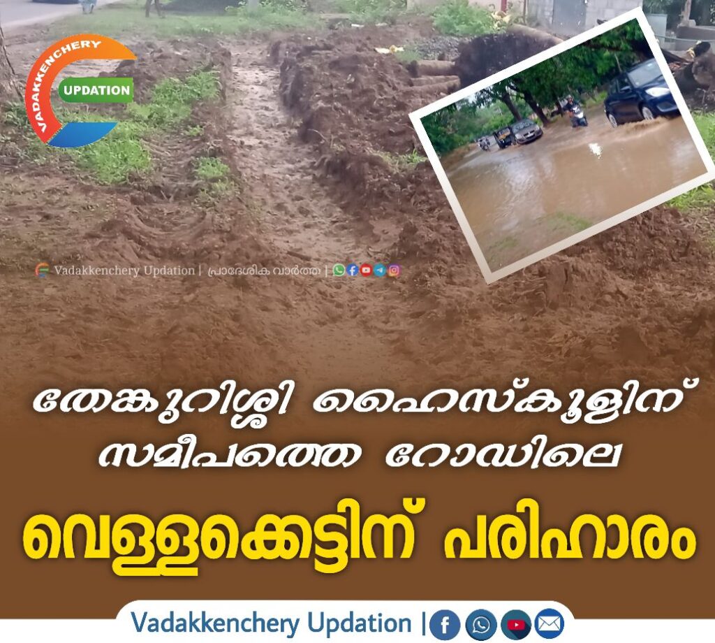 പാലക്കാട് കണ്ണാടി പന്നിക്കോട് റോഡിൽ തേങ്കുറിശ്ശി ഹൈസ്കൂളിന് സമീപമാണ് വേനൽ മഴ കനത്തതോടുകൂടി റോഡിൽ ഉണ്ടായ വെള്ളക്കെട്ടിന് പരിഹാരമായി. PWD അസിസ്റ്റന്റ് എൻജിനീയർ, പഞ്ചായത്ത് സെക്രട്ടറി, പഞ്ചായത്ത് പ്രസിഡന്റ്, പഞ്ചായത്ത് ചെയർമാൻ, മറ്റു മെമ്പർമാർ എന്നിവരുടെ നേതൃത്വത്തിൽ JCB ഉപയോഗിച്ച് വെള്ളക്കെട്ട് നീക്കം ചെയ്തു. കഴിഞ്ഞ ദിവസങ്ങളിൽ ഉണ്ടായ വേനൽ മഴയിൽ തൊട്ടപ്പുറത്ത് വലിയാട്ടുകുന്നിൽ നിന്നും വെള്ളം ഒലിച്ചിറങ്ങിയതോടെയാണ് റോഡ് നിറയാൻ കാരണമായത്. റോഡിൽ വെള്ളം കെട്ടി നിൽക്കുന്നതിനാൽ വാഹനങ്ങൾ പോകാൻ ബുദ്ധിമുട്ട് നേരിട്ടിരുന്നു. ഈ വിഷയത്തിൽ അബ്ബാസ് വെമ്പല്ലൂർ ഇടപെട്ട് നൽകിയ വാർത്തയുടെ അടിസ്ഥാനത്തിലാണ് പരിഹാരം ഉണ്ടായത്