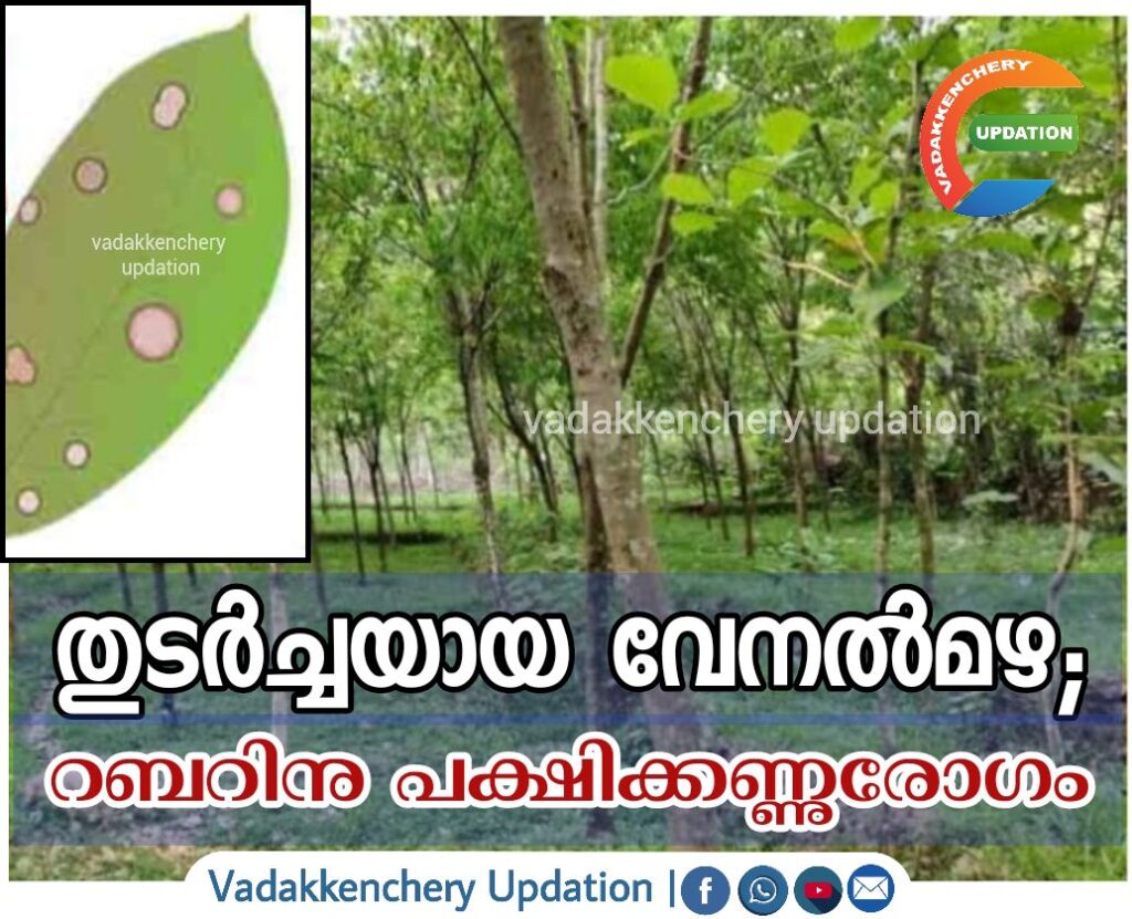 അയിലൂർ;റബർ കൃഷി മേഖലയില് പക്ഷിക്കണ്ണുരോഗം വ്യാപിക്കുന്നു. സ്വാഭാവിക ഇലകൊഴിഞ്ഞതിനുശേഷം വന്ന പുതിയ തളിരിലകളിലാണ് രോഗം വ്യാപിക്കുന്നത്. പുതുതായി നട്ടുപിടിപ്പിച്ച രണ്ടും മൂന്നും വർഷം പ്രായമായ റബർതൈകളിലെ പുതിയ തളിരിലകളിലും രോഗം വ്യാപിക്കുന്നുണ്ട്.