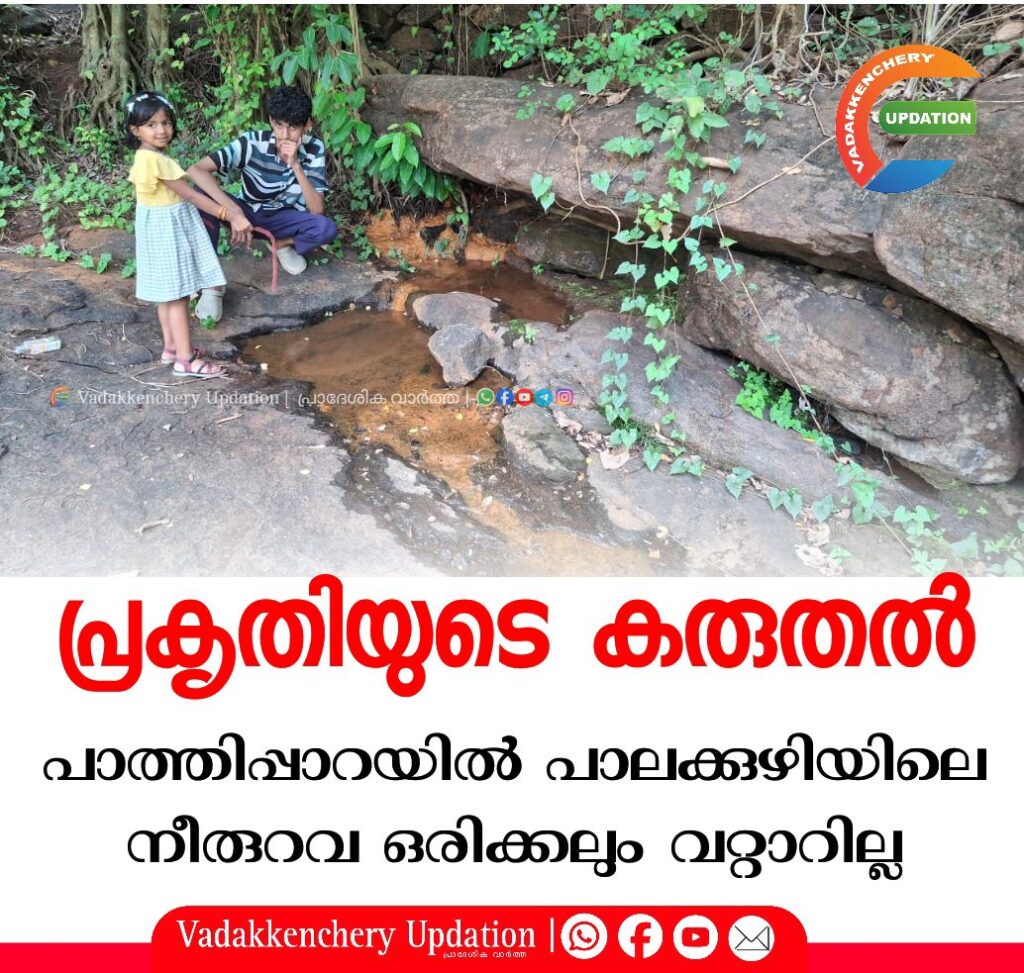 അത്തരമൊരു അത്ഭുതം ഒളിപ്പിച്ചു വച്ച കൊച്ചു ജീവജല സംഭരണിയാണ് കിഴക്കഞ്ചേരി പഞ്ചായത്തിലെ കൊട്ടേക്കുളം പാത്തിപ്പാറയിലെ കല്ലിടുക്കിൽ നിന്നുള്ള പാറപ്പുറത്തെ ചെറിയ കുഴിയിൽ നിന്നുള്ള നീരുറവ.