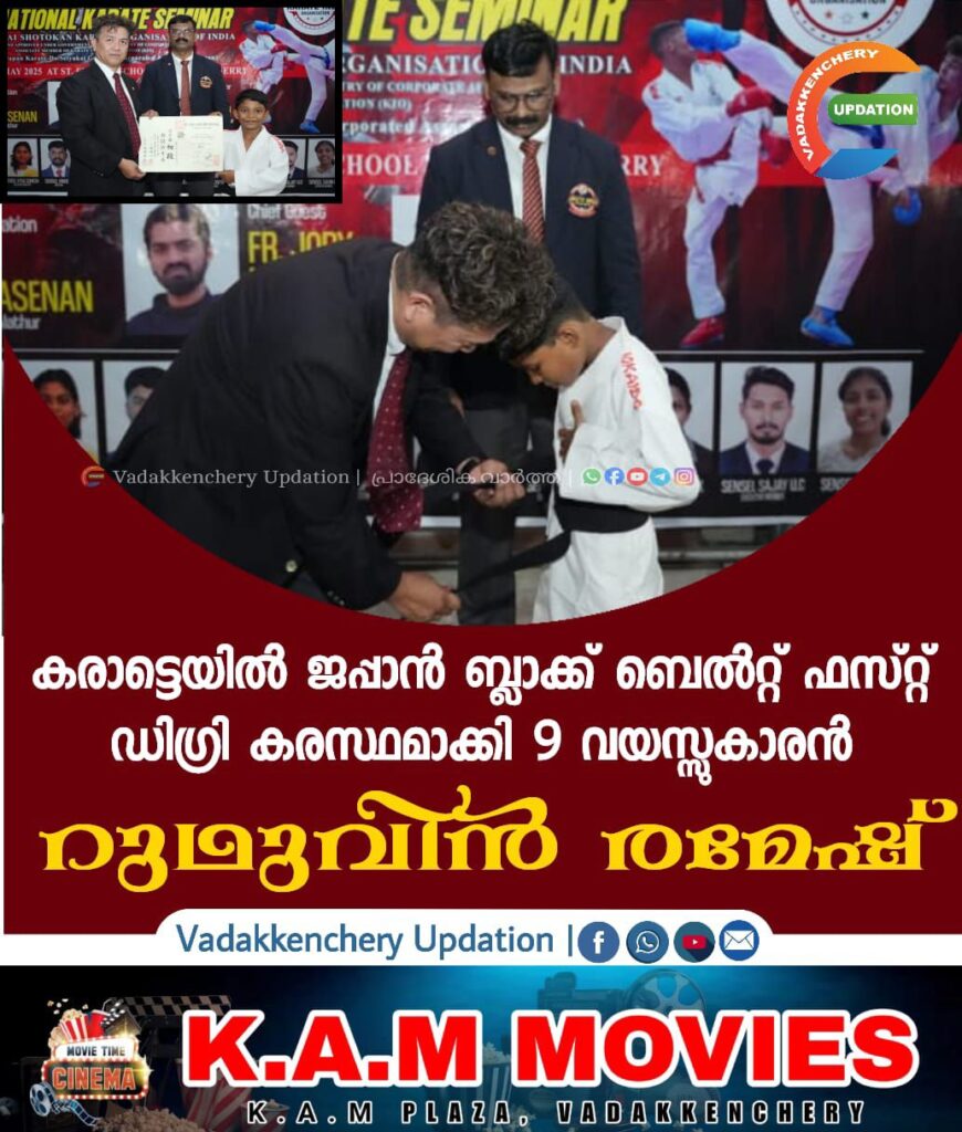 ജപ്പാൻ ഷോട്ടോകാൻ കരാട്ടെ ഡൊ സെയ്യുകായ് ഇന്ത്യയുടെ നേതൃത്വത്തിൽ നടന്ന ബ്ലാക്ക് ബെൽറ്റ് പരീഷയിലാണ് റുഥുവിൻ രമേഷ്ന് ഈ അംഗീകാരം ലഭിച്ചത്.കിഴക്കഞ്ചേരി പഞ്ചായത്തിലെ കുണ്ടുകാട് കേന്ദ്രമായി പ്രവർത്തിക്കുന്ന ലോകോത്തര നിലവാരമുള്ള സെയ്യൂകായ് കരാട്ടെ അക്കാദമിയിലാണ് റുഥുവിൻ രമേഷ് കരാട്ടെ അഭ്യസിക്കുന്നത്. ജപ്പാൻ കരാത്തെ ഫെഡറേഷൻ ജൂനിയർ നാഷണൽ ടീം കോച്ചിന്റെ കൈയ്യിൽ നിന്നുമാണ് ഫസ്റ്റ് ഡിഗ്രി ബ്ലാക്ക് ബെൽറ്റ് റുഥുവിൻ രമേഷ് ഏറ്റുവാങ്ങിയത്. 5 വയസ്സു മുതൽ ഷിഹാൻ സുമേഷിന്റെ കീഴിൽ പരിശീലനം നടത്തി വരികയാണ് മംഗലംഡാം പറശ്ശേരി വീട്ടിൽ രമേഷ്ന്റെയും, നീതു രമേഷിന്റെയും മകനായ റുഥുവിൻ രമേഷ് ആലത്തൂർ ബി എസ് എസ് ഗുരുകുലം സ്കൂൾ അഞ്ചാം ക്ലാസിൽ പഠിക്കുന്നു.