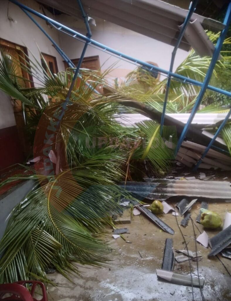 മുൻവശത്തെ ഷീറ്റിമുകളിലായി മരം ഒടിഞ്ഞു വീഴുകയായിരുന്നു.