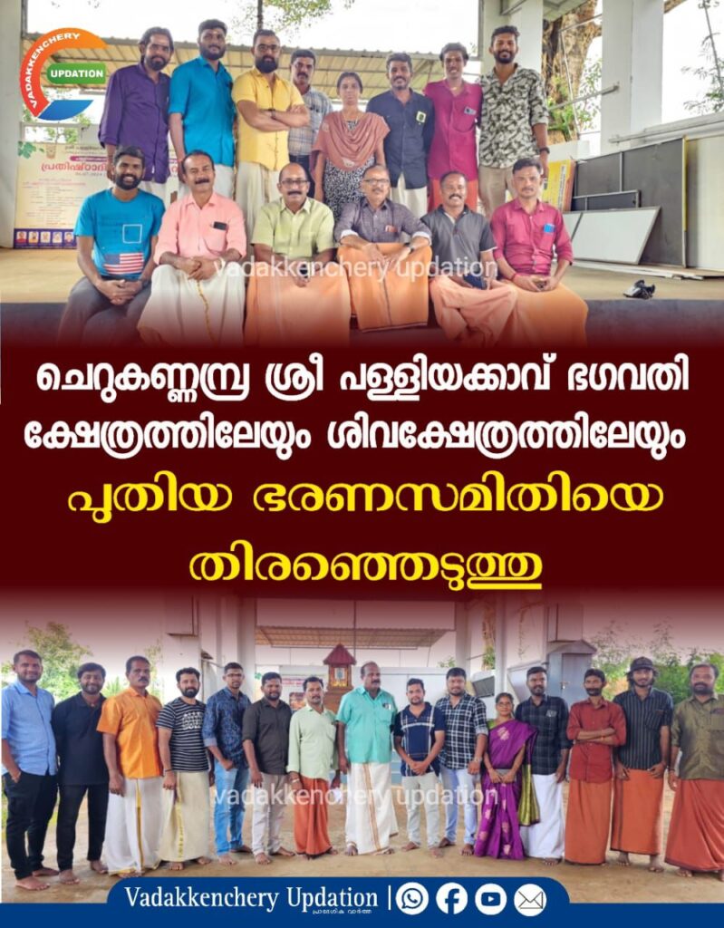 ചെറുകണ്ണമ്പ്ര ശ്രീ പള്ളിയക്കാവ് ഭഗവതി ക്ഷേത്രത്തിലേയും ശിവക്ഷേത്രത്തിലേയും പുതിയ ഭരണസമിതി തിരഞ്ഞെടുപ്പ് ദേവസ്വം ബോർഡ് ഓഫീസിൻറെ അധ്യക്ഷതയിൽ നടത്തി. 14 അംഗ കമ്മിറ്റിയാണ് തിരഞ്ഞെടുത്തത്