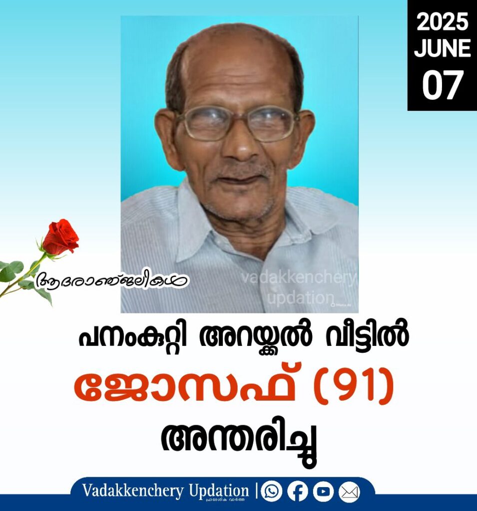 ആദ്യകാല കുടിയേറ്റ കർഷകൻ പനംകുറ്റി അറയ്ക്കൽ വീട്ടിൽ ജോസഫ് (91) അന്തരിച്ചു.