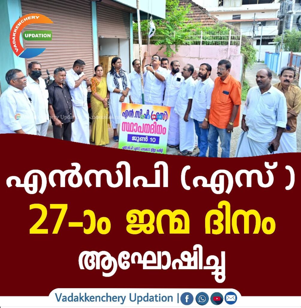എൻസിപി (എസ് ) 27ാം ജന്മദിന പരിപാടികൾ പാലക്കാട് ജില്ലാ കമ്മിറ്റി ഓഫിസിൽ വിവിധ പരിപാടികളോടെ നടത്തപ്പെട്ടു. രാവിലെ ഓഫീസ് അങ്കണത്തിൽ ജില്ലാ പ്രസിഡന്റ് മോഹൻ ഐസക്ക് പതാക ഉയർത്തി നിർവ്വഹിച്ച ശേഷം ജില്ലാ കമ്മിറ്റി ഓഫിസിൽ നടന്ന ആഘോഷ പരിപാടികൾ എൻസിപി (എസ് ) സംസ്ഥാന സെക്രട്ടറി ഓട്ടൂർ ഉണ്ണിക്കൃഷ്ണൻ ഉദ്ഘാടനം ചെയ്തു. നിലമ്പൂർ ഉപതെരഞ്ഞെടുപ്പുമായി ബന്ധപ്പെട്ട് പാർട്ടിയുടെ ദേശീയ നേതാവും വനം വന്യജീവി വകുപ്പ് മന്ത്രിയുമായ എ കെ ശശീന്ദ്രനെ ഒറ്റതിരിഞ്ഞ് അക്രമിക്കാൻ ശ്രമിക്കുന്നവർ