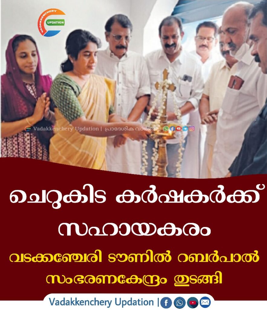 ചെറുകിട റബർ കർഷകർക്ക് സഹായകമായി റബർപാൽ സംഭരണകേന്ദ്രം വടക്കഞ്ചേരി ബസ് സ്റ്റാൻഡിൽ ആരംഭിച്ചു. കർഷകർ സംഭരിക്കുന്ന പാൽ അതാത് ദിവസം കേന്ദ്രത്തിൽ എത്തിച്ചാൽ രണ്ടോ മൂന്നോ ദിവസത്തിനുള്ളിൽ പണം നൽകും. ഇതുമൂലം ചെറുകിട റബർ കർഷകർക്ക് ഷീറ്റ് അടിക്കലും ഉണക്കലും മറ്റു അനുബന്ധ ചെലവുകളും സമയനഷ്ടവും അധ്വാനവും ഒഴിവാക്കാമെന്ന് സംരംഭത്തിന് നേതൃത്വം നൽകുന്ന കെ.പി. എൽദോ പറഞ്ഞു