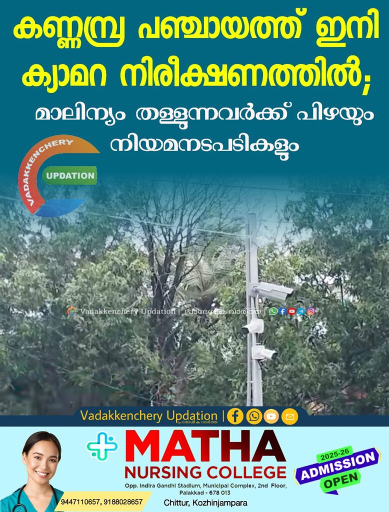 കണ്ണമ്പ്ര ഗ്രാമപഞ്ചായത്തിനെ സമ്പൂർണ്ണ മാലിന്യമുക്തമാക്കുന്നതിന്റെ ഭാഗമായാണ് ഈ നടപടി. പഞ്ചായത്തിന്റെ പ്രധാന സ്ഥലങ്ങളിലും മാലിന്യം തള്ളാൻ സാധ്യതയുള്ള മേഖലകളിലുമാണ് ക്യാമറകൾ സ്ഥാപിച്ചിരിക്കുന്നത്. ഇതിനോടകം തന്നെ നിരീക്ഷണ ക്യാമറകൾ വഴി നിയമലംഘനം നടത്തിയ നിരവധി പേരെ കണ്ടെത്തുകയും പിഴ ചുമത്തുകയും ചെയ്തിട്ടുണ്ട്. മാലിന്യം തള്ളുന്ന പ്രവണത പൂർണ്ണമായി ഇല്ലാതാക്കുക എന്നതാണ് പഞ്ചായത്ത് ലക്ഷ്യമിടുന്നത്. മാലിന്യങ്ങൾ ശരിയായ രീതിയിൽ തരംതിരിച്ച് സംസ്കരിക്കാൻ എല്ലാവരും ശ്രദ്ധിക്കണമെന്നും സെക്രട്ടറി അറിയിച്ചു.