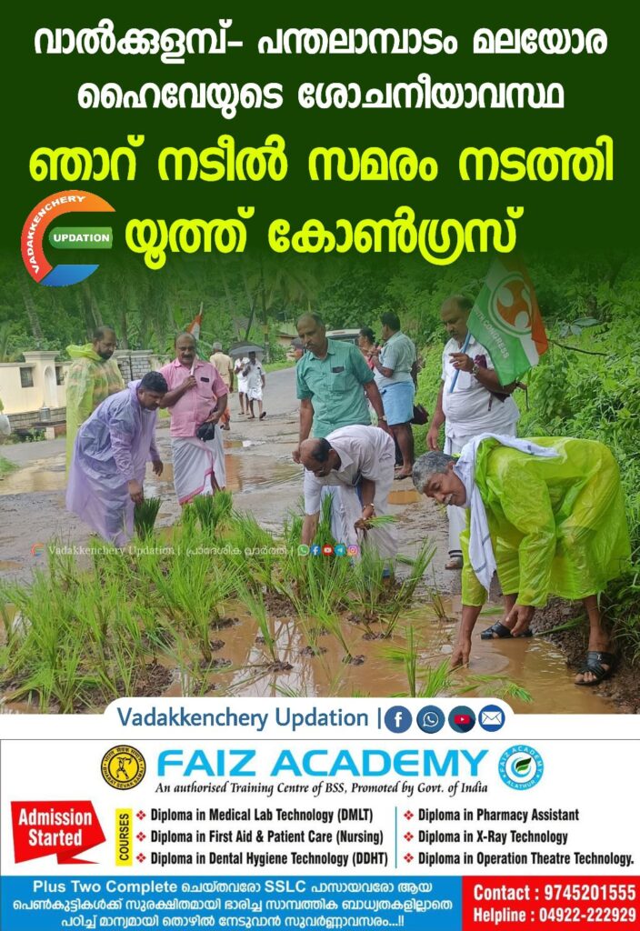 വാൽക്കുളമ്പ്- പന്തലാമ്പാടം മലയോര ഹൈവേയുടെ ശോചനീയാവസ്ഥയിൽ പ്രതിഷേധിച്ച് യൂത്ത് കോൺഗ്രസ് കിഴക്കഞ്ചേരി മണ്ഡലം കമ്മിറ്റിയുടെ നേതൃത്വത്തിൽ പനംകുറ്റി