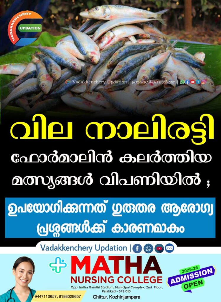 മത്സ്യം വാങ്ങുമ്പോൾ പരിശോധിക്കണമെന്ന് ആരോഗ്യ വകുപ്പ് പറയുന്നു. ഫോർമാലിൻ തളിച്ച മീനുകളുടെ