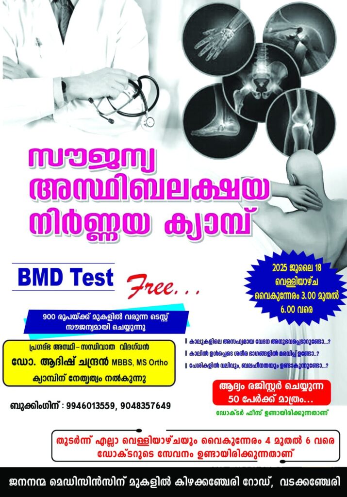 സൗജന്യ അസ്ഥിബലക്ഷയ നിർണ്ണയ ക്യാമ്പ്