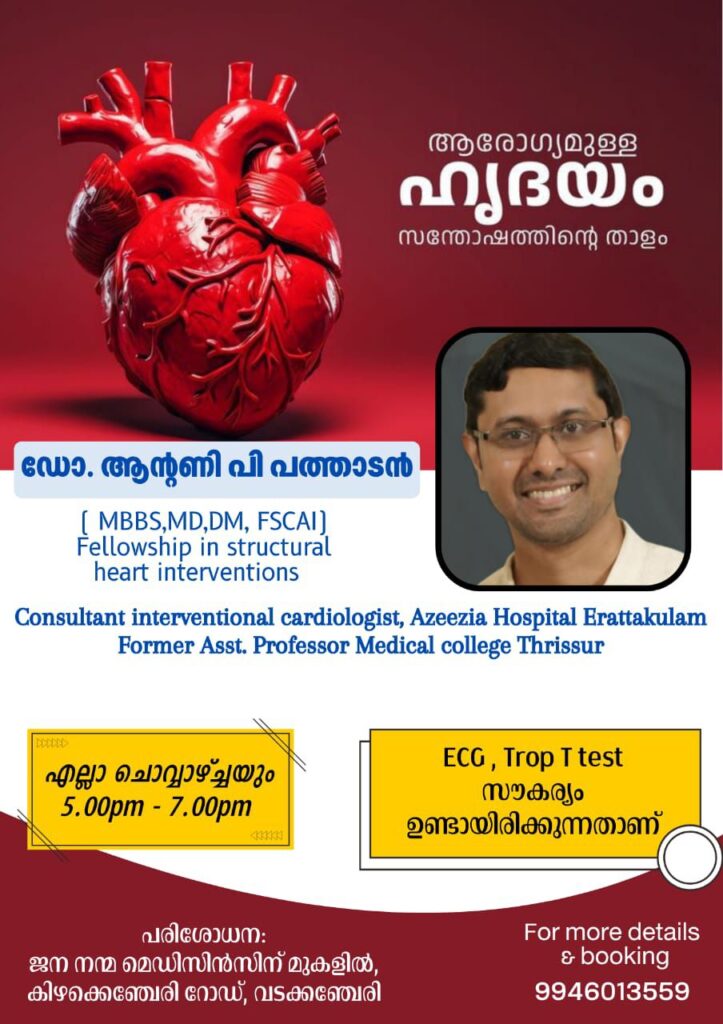 Consultant interventional cardiologist, Azeezia Hospital Erattakulam Former Asst. Professor Medical college Thrissur