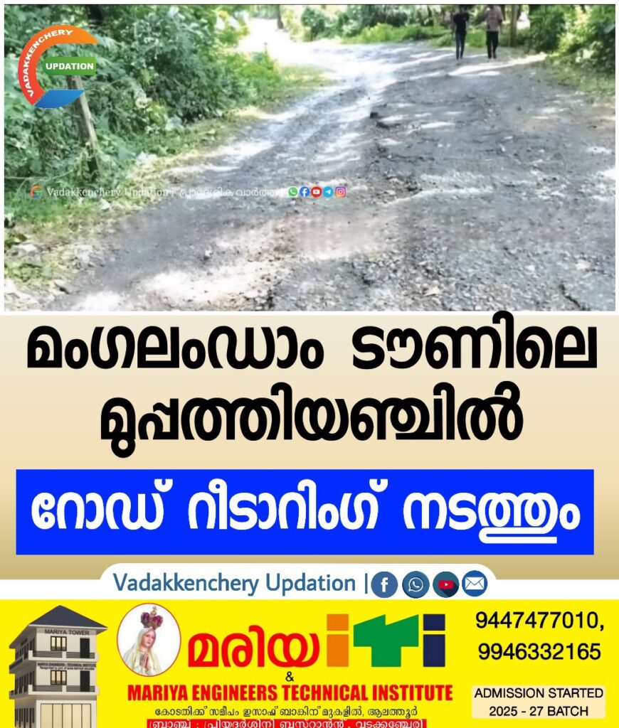 വഴിനടക്കാനാകാത്ത വിധം തകർന്നു കിടക്കുന്ന മംഗലംഡാം ടൗണിലെ 35 എന്ന പ്രദേശത്തെ റോഡ് റീടാറിംഗ് നടത്തും.ഇതിന്റെ ഭാഗമായി റോഡളന്ന് പ്രാരംഭ പ്രവൃത്തികള്ക്കു തുടക്കമായി.