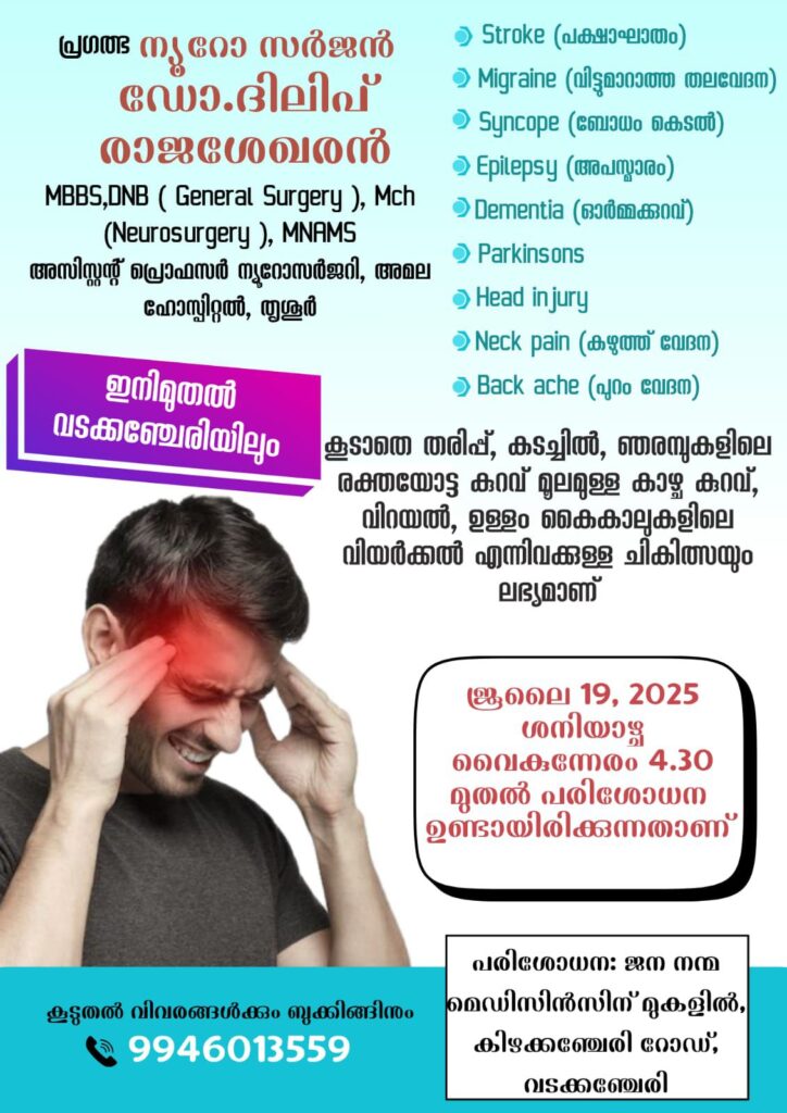 പ്രഗത്ഭ ന്യൂറോ സർജൻ ഡോ.ദിലിപ് രാജശേഖരൻ MBBS, DNB (General Surgery), Mch (Neurosurgery), MNAMS അസിസ്റ്റന്റ് പ്രൊഫസർ ന്യൂറോസർജറി, അമല ഹോസ്പിറ്റൽ, തൃശൂർ