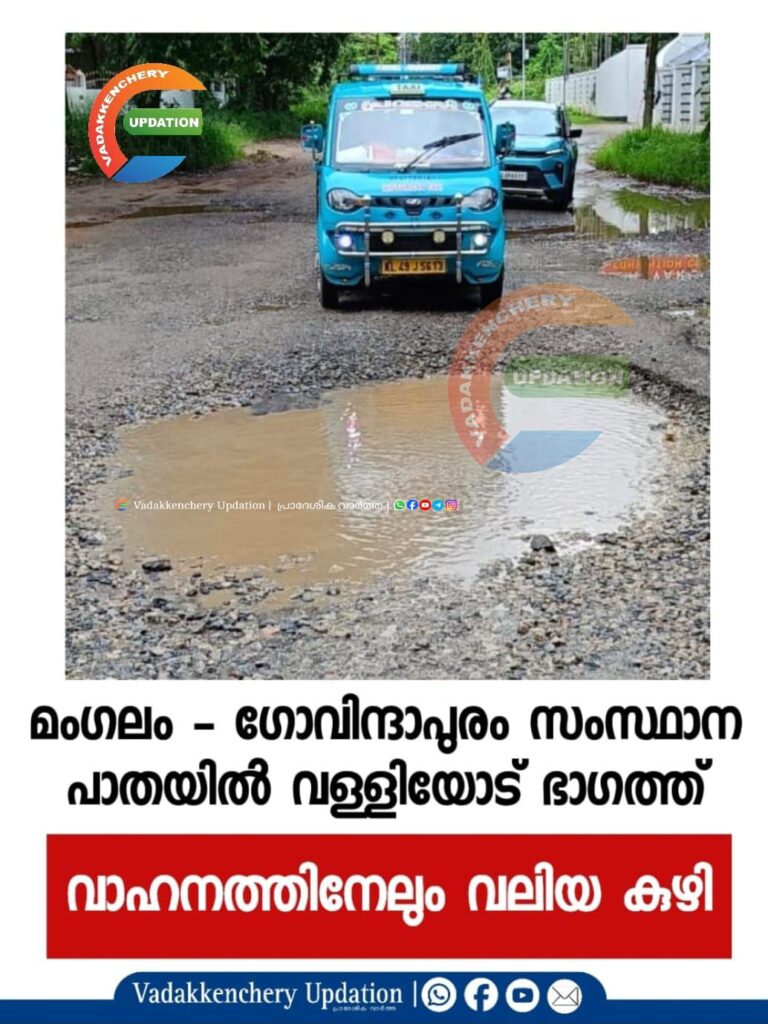 മംഗലം – ഗോവിന്ദാപുരം സംസ്ഥാന പാതയിൽ വള്ളിയോട് തേവരക്കാട് കല്യാണ മണ്ഡപത്തിന്റെ മുൻപിൽ ഭാഗത്ത് ചെറിയ കുഴികൾ എല്ലാം കൂടി യോജിച്ച് വലിയ കുഴിയായി.ഇതിനെ തുടർന്ന് ചെറു വാഹനങ്ങൾക്ക് ഇതിലൂടെ പോവാൻ കഴിയാതെയായി . പലരും സമാന്തരമായ മറ്റ് വഴികളിലൂടെയാണ് സഞ്ചരിക്കുന്നത്. ഉടൻ കുഴി മൂടിയില്ലെങ്കിൽ വാഹനങ്ങൾ അപകടത്തിൽ പെടുന്നത് വർദ്ധിക്കും.നിരവധി സംഘടനകൾ ഇവിടെ പ്രതിഷേധങ്ങൾ നടത്തിയിട്ടുണ്ട്.