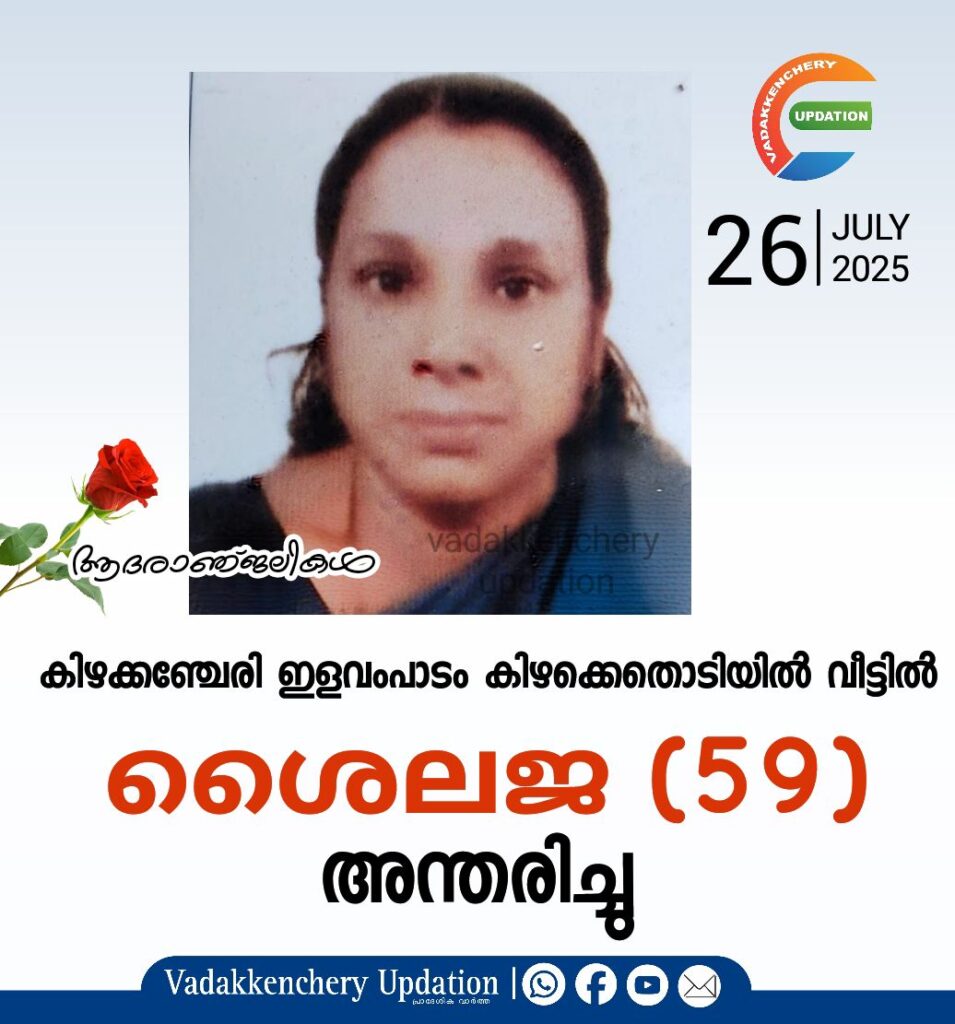കിഴക്കഞ്ചേരി ഇളവംപാടം കിഴക്കെതൊടിയിൽ വീട്ടിൽ ശൈലജ (59) അന്തരിച്ചു.