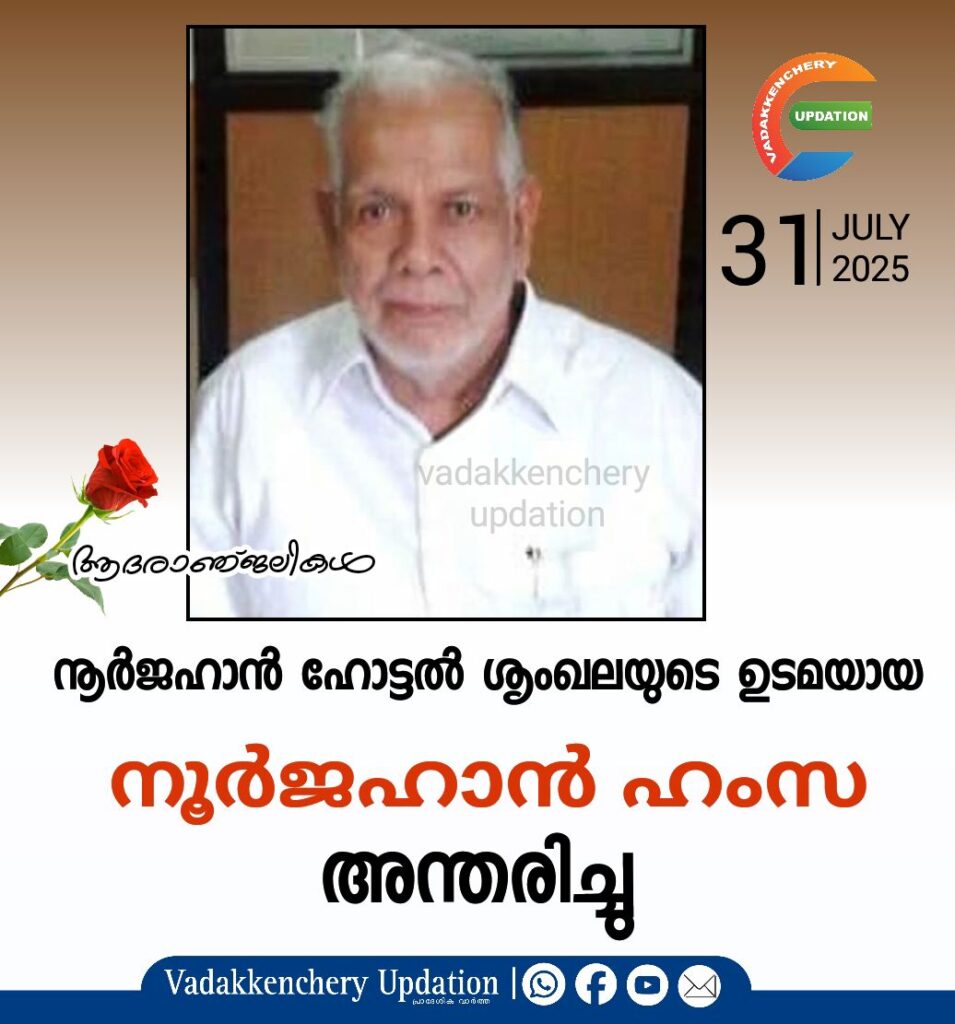 നൂർജഹാൻ ഹംസ അന്തരിച്ചു. പതിറ്റാണ്ടുകളായി ബിസിനസ് മേഖലയിലും മത സാമൂഹിക സാംസ്കാരിക മേഖലകളിലും നിറസാന്നിധ്യമായി നിറഞ്ഞുനിന്നിരുന്ന വ്യക്തിത്വമായിരുന്നു.