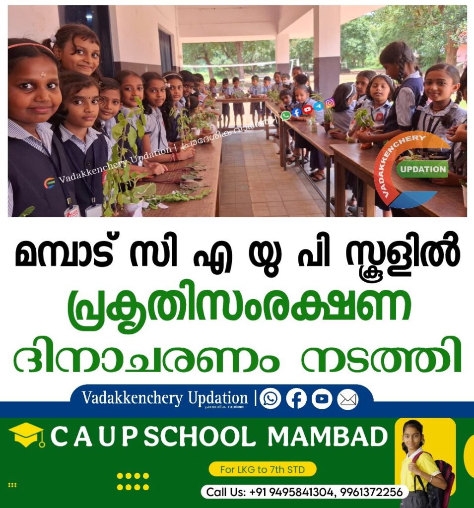 മമ്പാട് സിഎയുപി സ്കൂളിലെ മാതൃഭൂമി സീഡ് ക്ലബ്ബിന്റെ നേതൃത്വത്തിൽ പ്രകൃതിസംരക്ഷണ ദിനാചരണത്തിൻ്റെ ഭാഗമായി ദശപുഷ്പ സസ്യങ്ങൾ, പത്തിലകൾ, പത്തിലക്കറികൾ, ഔഷധസസ്യങ്ങൾ എന്നിവയുടെ പ്രദർശനം നടന്നു. എല്ലാ കുട്ടികൾക്കും ഔഷധക്കഞ്ഞി വിതരണം ചെയ്തു. പരിപാടിയുടെ ഉദ്ഘാടനം കിഴക്കഞ്ചേരി ഗ്രാമപ്പഞ്ചായത്ത് പ്രസിഡൻ്റ് കവിതാ മാധവൻ നിർവഹിച്ചു. പഞ്ചായത്തംഗം രതിക മണികണ്ഠൻ, പിടിഎ പ്രസിഡൻ്റ് യു. അഷ്റഫ്, പ്രധാനാധ്യാപിക വി.കെ. ബിന്ദു, സീഡ് കോഡിനേറ്റർ ഒ.എസ്. നീന എന്നിവർ സംസാരിച്ചു. ആർ. സുദർശനൻ ക്ലാസെടുത്തു.