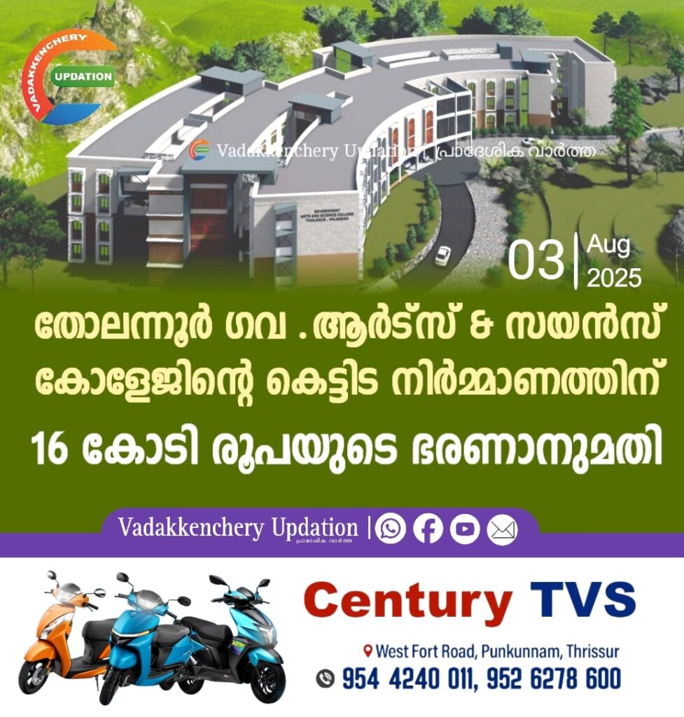 കുത്തന്നൂർ ഗ്രാമപഞ്ചായത്തിലെ തോലന്നൂർ ഗവൺമെൻ്റ് ആർട്സ് ആൻഡ് സയൻസ് കെട്ടിട നിർമ്മാണത്തിന് ബജറ്റ് ഫണ്ടിൽ നിന്നും 5 കോടി രൂപയും നവ കേരള സദസ്സ് ഫണ്ടിൽ നിന്നും 5 കോടി രൂപയും ഉൾപ്പെടുത്തി 10 കോടി രൂപയുടെ കെട്ടിട നിർമ്മാണ പ്രവൃത്തികൾക്കുള്ള ഭരണാനുമതിയും പി. എം .ഉഷ പദ്ധതിയിൽ ഉൾപ്പെടുത്തി ഹോസ്റ്റൽ ബ്ലോക്ക് നിർമ്മാണത്തിനും ഹോസ്റ്റൽ ഫർണിച്ചറുകൾക്കുമായി 6 കോടി രൂപയുടെ ഭരണാനുമതിയും ലഭിച്ചു സാങ്കേതിക അനുമതി ഉടൻ ലഭ്യമാക്കി ടെൻഡർ നടപടികൾ പൂർത്തീകരിച്ച് എത്രയും വേഗത്തിൽ കോളേജിന്റെ നിർമ്മാണ പ്രവർത്തനങ്ങൾ ആരംഭിക്കാൻ ബന്ധപ്പെട്ട വകുപ്പ് ഉദ്യോഗസ്ഥർക്ക് നിർദ്ദേശം നൽകിയിട്ടുണ്ടെന്ന് പി.പി സുമോദ് എം എൽ എ അറിയിച്ചു