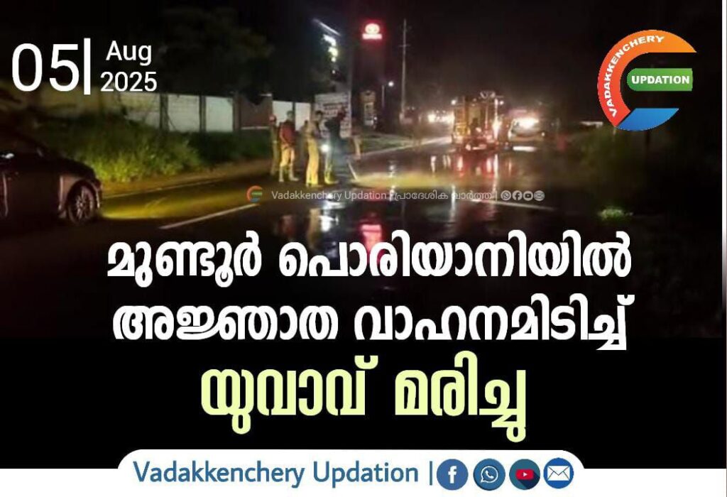 മുണ്ടൂർ പൊരിയാനിയിൽ അജ്ഞാത വാഹനമിടിച്ച് യുവാവ് മരിച്ചു
