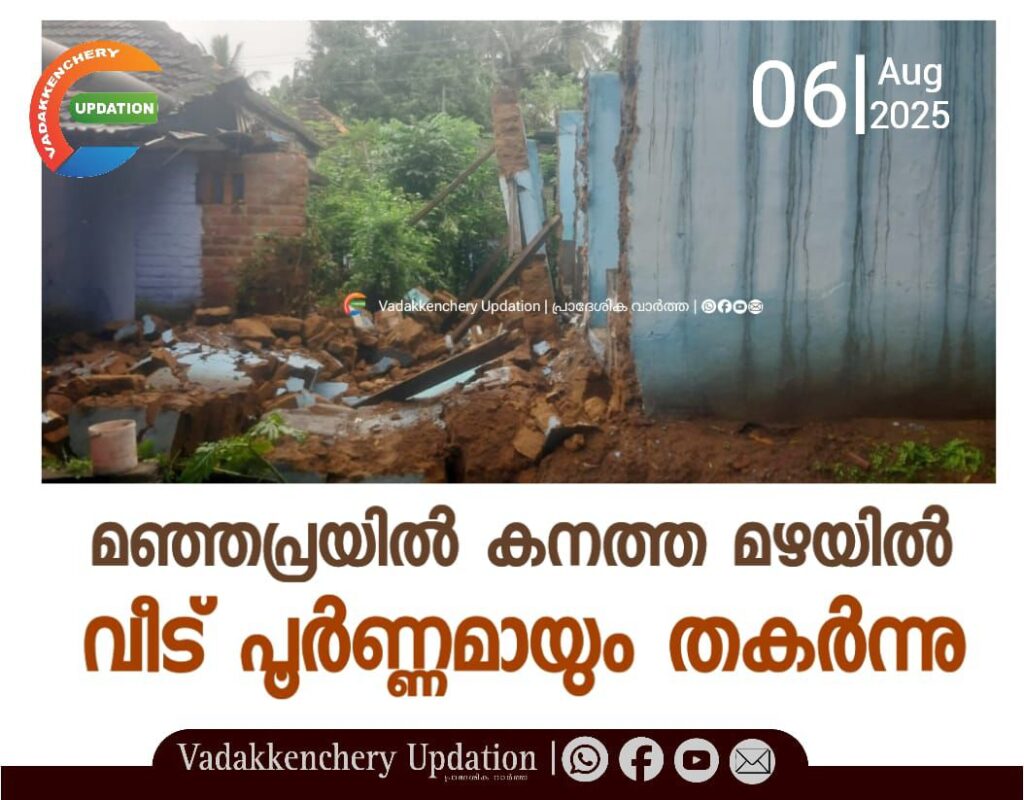 കണ്ണമ്പ്ര 2 വില്ലേജിൽ മഞ്ഞപ്ര വടക്കേതറയിൽ സതീശന്റെ വീട് ഇന്നലെയുണ്ടായ കാറ്റിലും മഴയിലും വീട് പൂർണ്ണമായും തകർന്നു വീണു. കഴിഞ്ഞ ആഴ്ച മഴയിൽ ചുമർ തറയിൽനിന്നും ഇളകിയതിനെ തുടർന്ന് സതീഷും കുടുംബവും അയല്പക്കത്തേക്ക് മാറിത്താമസിച്ചിരുന്നതിനാൽ ദുരന്തം ഒഴിവായി.