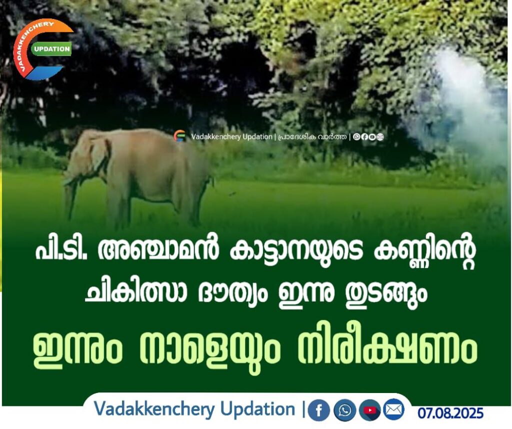 പി.ടി. അഞ്ചാമൻ കാട്ടാനയുടെ കണ്ണിന്റെ ചികിത്സാ ദൗത്യം ഇന്നു തുടങ്ങും; ഇന്നും നാളെയും നിരീക്ഷണം.