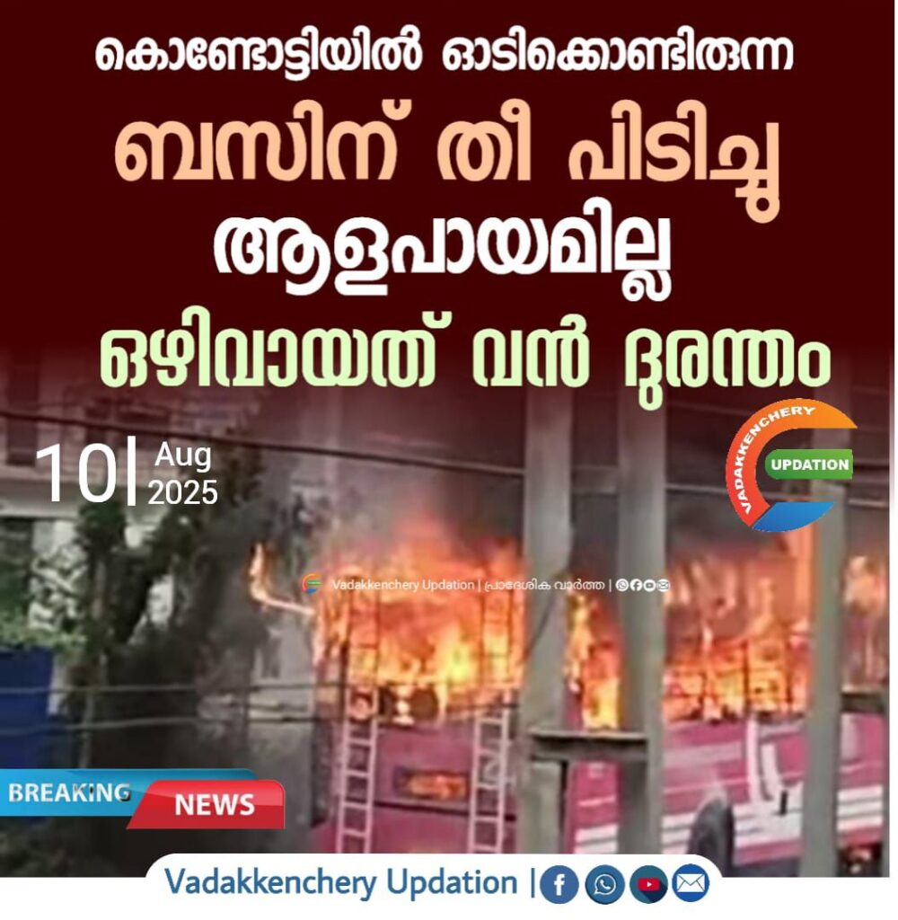 കൊണ്ടോട്ടിയിൽ ഓടിക്കൊണ്ടിരുന്ന ബസിന് തീ പിടിച്ചു; ആളപായമില്ല, ഒഴിവായത് വന് ദുരന്തം