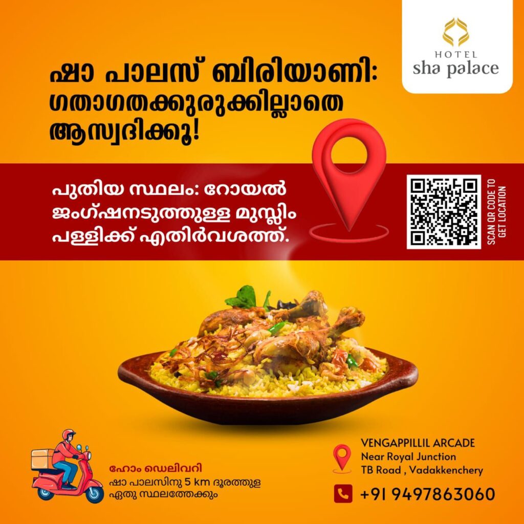 വടക്കഞ്ചേരിയിലെ പ്രിയപ്പെട്ട ഷാ പാലസ് ഹോട്ടൽ, ഇപ്പോൾ റോയൽ ജംഗ്ഷൻ മുസ്ലിം പള്ളിക്ക് എതിർവശത്തുള്ള പുതിയ കെട്ടിടത്തിൽ.