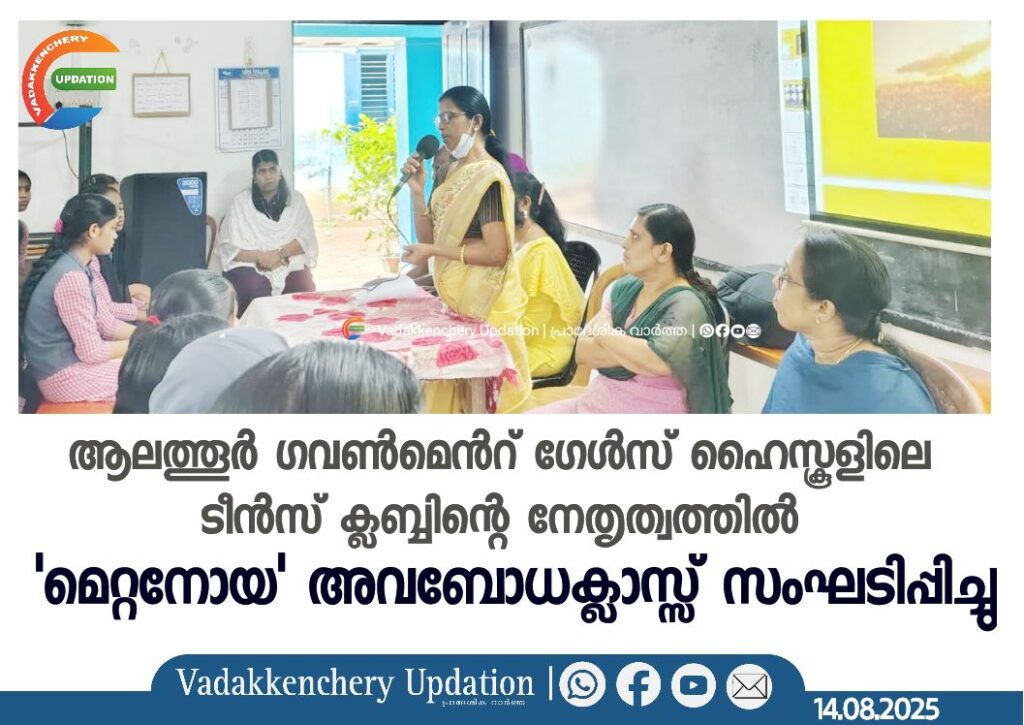 ആലത്തൂർ ഗവൺമെൻറ് ഗേൾസ് ഹൈസ്കൂളിലെ ടീൻസ് ക്ലബ്ബിന്റെ നേതൃത്വത്തിൽ ‘മെറ്റനോയ’ അവബോധക്ലാസ്സ് സംഘടിപ്പിച്ചു.