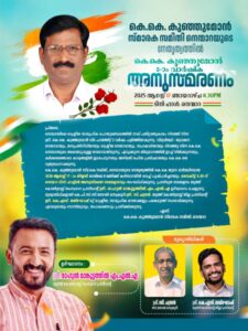 അനുസ്മരണം നാളെ ഓഗസ്റ്റ് 17 രാവിലെ എട്ടുമണിക്ക് കരിമ്പാറയിൽ സ്ഥാപിച്ച കെ കെ കുഞ്ഞുമോന്റെ പ്രതിമയിൽ പുഷ്പാർച്ചനയും, അനുസ്മരണയോഗം വൈകുന്നേരം 4.30 മണിക്ക് നെന്മാറ ടിനി ഓഡിറ്റോറിയത്തിൽ വച്ച് രാഹുൽ മാങ്കുട്ടത്തിൽ എം.എൽ.എ. ഉദ്ഘാടനം ചെയ്യും. KPCC ജനറൽ സെക്രട്ടറി സി. ചന്ദ്രൻ, യൂത്ത് കോൺഗ്രസ് ജില്ലാ പ്രസിഡൻ്റ് കെ. എസ്. ജയഘോഷ് തുടങ്ങി രാഷ്ട്രീയ സാമൂഹ്യ മേഖലയിലെ പ്രമുഖ വ്യക്തികൾ പങ്കെടുക്കും.