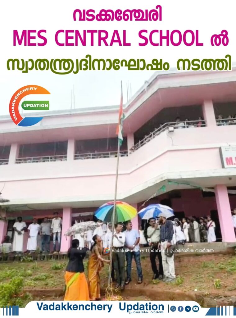വടക്കഞ്ചേരി MES CENTRAL SCHOOL ൽ സ്വാതന്ത്ര്യ ദിനത്തോടനുബന്ധിച്ചു സെക്രട്ടറി സുലൈമാൻ ചിഞ്ചുസ് പതാക ഉയർത്തി. തുടർന്നു നടന്ന സ്വാതന്ത്ര്യദിനാഘോഷ പരിപാടികൾ ചെയർമാൻ P M സക്കീർ ഹുസൈൻ ഉദ്ഘാടനം ചെയ്തു. MES ജില്ലാ ജോ. സെക്രട്ടറി C S ഉസ്മാൻ, PTA പ്രസിഡന്റ് V S ഷാജഹാൻ എന്നിവർ സ്വാതന്ത്ര്യദിന സന്ദേശം നൽകി. പ്രിൻസിപ്പാൾ ശ്രീജ രാജശേഖർ സ്വാഗതം ആശംസിച്ചു. ജോ.സെക്രട്ടറി ജിയാസുദ്ധീൻ പടിഞ്ഞാറെക്കര, മുഹമ്മദ് ഘനി, മുഹമ്മദ് ഇബ്രാഹിം, ഷാഹിർ മോൻ, യക്കൂബ് പടിക്കൽ എന്നിവർ പങ്കെടുത്തു. ജയകുമാർ മാസ്റ്റർ നന്ദി രേഖപ്പെടുത്തി.