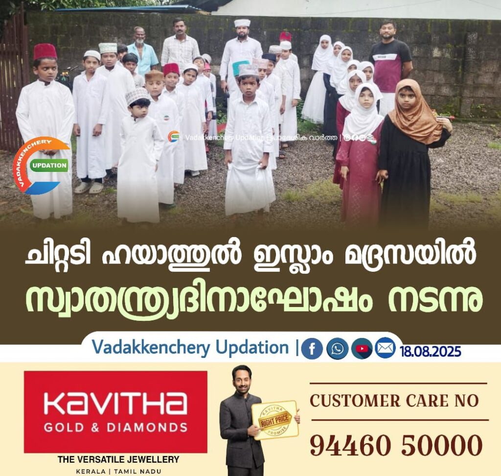 ചിറ്റടി ഹയാത്തുൽ ഇസ്ലാം മദ്രസയിൽ സ്വാതന്ത്ര്യദിനാഘോഷം നടന്നു.