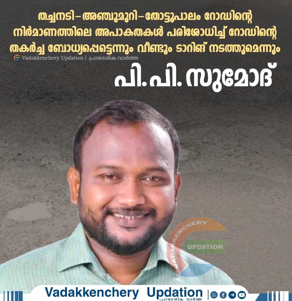 നിർമാണം പൂർത്തിയാക്കി ആഴ്ചകൾ പിന്നിട്ടപ്പോഴേക്കും റോഡിൽ കുഴികൾ രൂപപ്പെടുകയും ടാറിങ് ഇളകുകയും ചെയ്തത് വൻ പ്രതിഷേധത്തിന് ഇടയാക്കിയിരുന്നു. എംഎൽഎയുടെ നിർദേശപ്രകാരം ജില്ലാ പഞ്ചായത്ത് എക്സിക്യൂട്ടീവ് എൻജിനീയർ റോഡ് പരിശോധിച്ചു. റോഡ് നിർമാണത്തിൽ നിലവാരത്തിൽ പൂർത്തിയാക്കണമെന്നും അപാകതകളുണ്ടെന്ന് പരിശോധന റിപ്പോർട്ടും നൽകി. റോഡ് നിർമാണം എസ്റ്റിമേറ്റിൽ പറഞ്ഞ നിലവാരത്തിൽ പൂർത്തിയാക്കണമെന്നും മഴ മാറിയാൽ റോഡിന്റെ മുഴുവൻ ഭാഗവും ഒരു ലെയർ കൂടി ടാർ ചെയ്തു ബലപ്പെടുത്തുമെന്നും എംഎൽഎ അറിയിച്ചു. എന്നാൽ എംഎൽഎ ഫണ്ടിൽനിന്ന് ഒരു കോടി രൂപ ചെലവഴിച്ച് 800 മീറ്ററിൽ താഴെ മാത്രം വരുന്ന റോഡ്, നിർമിച്ച ഉടൻ തകർന്നതിൽ അന്വേഷണം ആവശ്യപ്പെട്ട് പുതുക്കോട് മണ്ഡലം കോൺഗ്രസ് കമ്മിറ്റി വിജിലൻസിനു പരാതി നൽകി. റോഡിലെ വെള്ളച്ചാൽ നിർമാണവും പൂർത്തിയായിട്ടില്ല. മുതിർന്ന സിപിഎം നേതാവിന്റെ സഹോദരനാണ് കരാറുകാരനെന്നും പണിയിൽ സംഭവിച്ച പാളിച്ചയിൽ കരാറുകാരനിൽ നിന്നു നഷ്ടപരിഹാരം ആവശ്യപ്പെടണമെന്നും കോൺഗ്രസ് ആവശ്യപ്പെട്ടു. റോഡിന്റെ തകർച്ച സംബന്ധിച്ച് ബോർഡുകൾ വച്ചതിന് 6 കോൺഗ്രസ് നേതാക്കൾക്കെതിരെ 12 ലക്ഷം രൂപ നഷ്ടപരിഹാരം ആവശ്യപ്പെട്ട് സിപിഎം നേതാക്കൾ വക്കീൽ നോട്ടീസ് അയച്ചതായും ജനങ്ങളോട് തകർച്ച ഇനിയും വിശദീകരിക്കുമെന്നും കോൺഗ്രസ് ഭാരവാഹികൾ പറഞ്ഞു.എസ്റ്റിമേറ്റിൽ പറഞ്ഞ നിലവാരത്തിൽ തന്നെ റോഡ് പ്രവൃത്തി പൂർത്തീകരിക്കുന്നതിനു എക്സിക്യൂട്ടീവ് എൻജിനീയറുടെ മേൽനോട്ടത്തിൽ പണികൾ നടത്താൻ കർശന നിർദേശം നൽകിയിട്ടുണ്ട്. അതിനുശേഷം മാത്രമേ കരാറുകാരന്റെ ബില്ലുകൾ മാറി നൽകാവൂ എന്ന് ബന്ധപ്പെട്ടവരെ അറിയിച്ചിട്ടുണ്ട്.