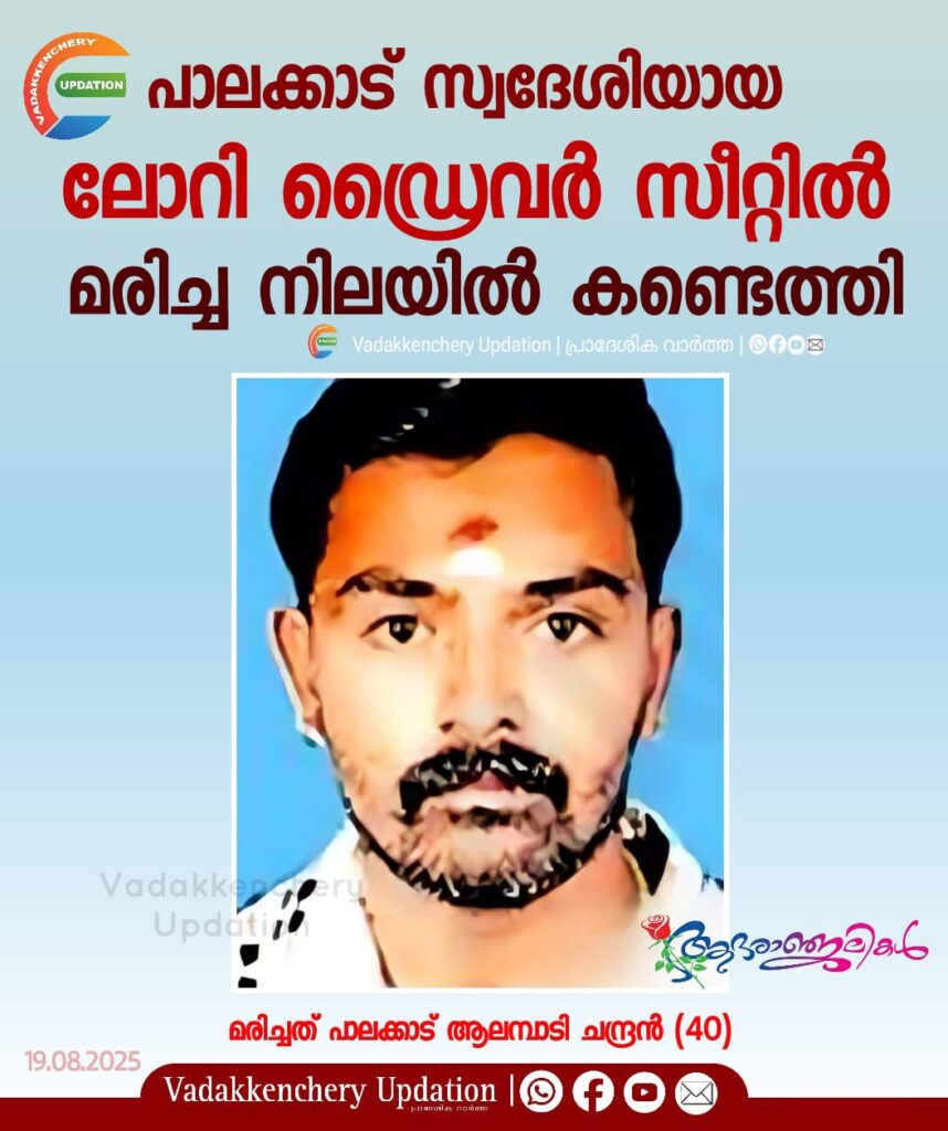പാലക്കാട് സ്വദേശിയായ ലോറി ഡ്രൈവർ സീറ്റിൽ മരിച്ച നിലയിൽ കണ്ടെത്തി