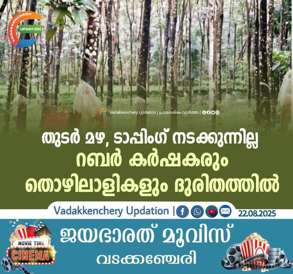 ടാപ്പിംഗ് തൊഴില് ഉപജീവനമാര്ഗമായിട്ടുള്ള തൊഴിലാളികളും മഴ മൂലം ദുരിതത്തിലാണ്. ഓണം അടുത്തെത്തിയതോടെ വലിയ ആശങ്കയിലാണ് ഇവർ.