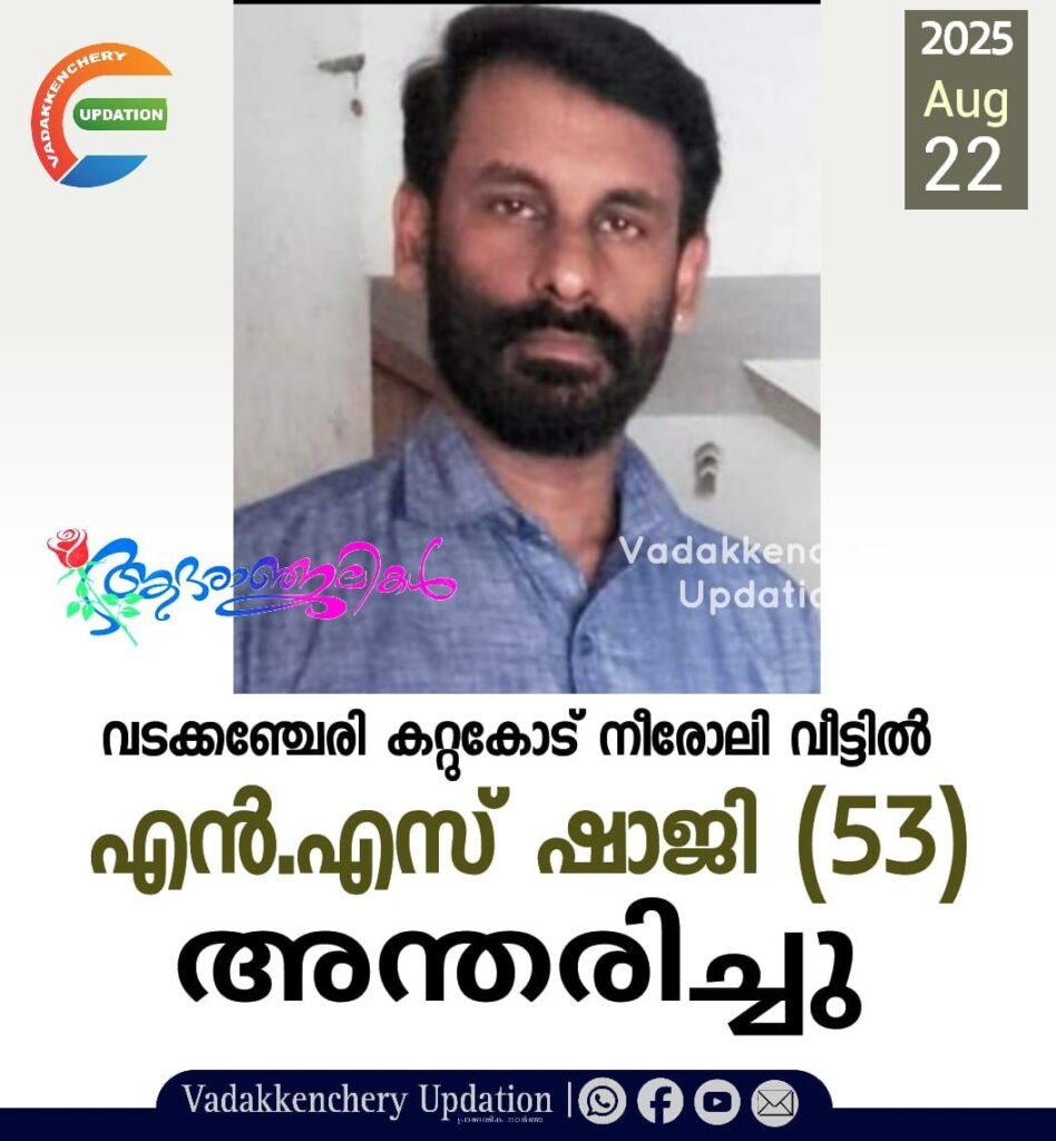 വടക്കഞ്ചേരി കറ്റുകോട് നീരോലി വീട്ടിൽ എൻ.എസ് ഷാജി (53) അന്തരിച്ചു.