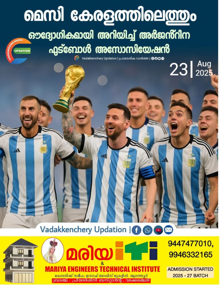 ലയണല് മെസിയും സംഘവും കേരളത്തിലെത്തും. മെസി ഉള്പ്പെടുന്ന അര്ജന്റീയുടെ ഫുട്ബോള് ടീം കേരളത്തില് എത്തുമെന്ന് അര്ജന്റീന ഫുട്ബോള് അസോസിയേഷന് ഔദ്യോഗികമായി അറിയിച്ചു. നവംബര് 10 മുതല് 18വരെയുള്ള ദിവസങ്ങളിലാണ് അര്ജന്റീന ടീമിന്റെ കേരള സന്ദര്ശനം poop