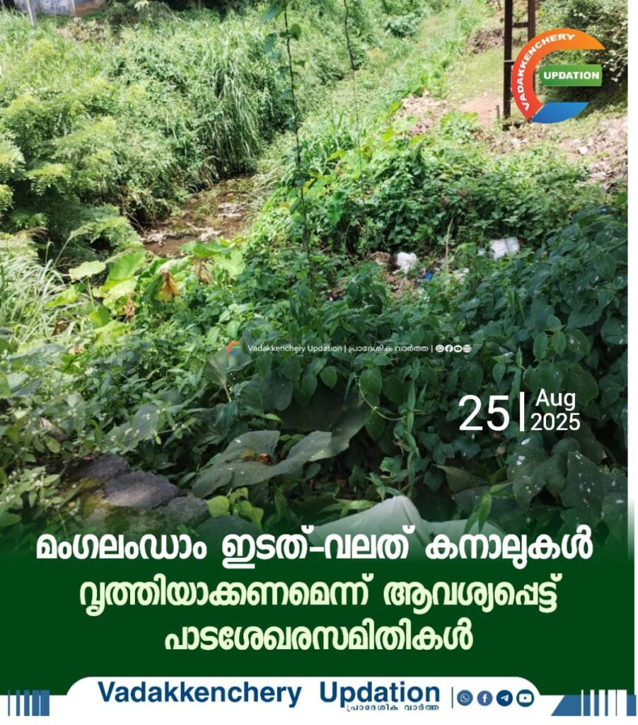 മംഗലംഡാം ഇടത്-വലത് കനാലുകൾ വൃത്തിയാക്കണമെന്ന് ആവശ്യപ്പെട്ട് പാടശേഖരസമിതികൾ