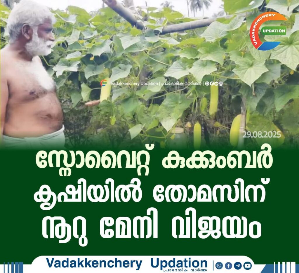 സ്നോവൈറ്റ് കുക്കുംബര് കൃഷിയില് തോമസിന് നൂറു മേനി വിജയം
