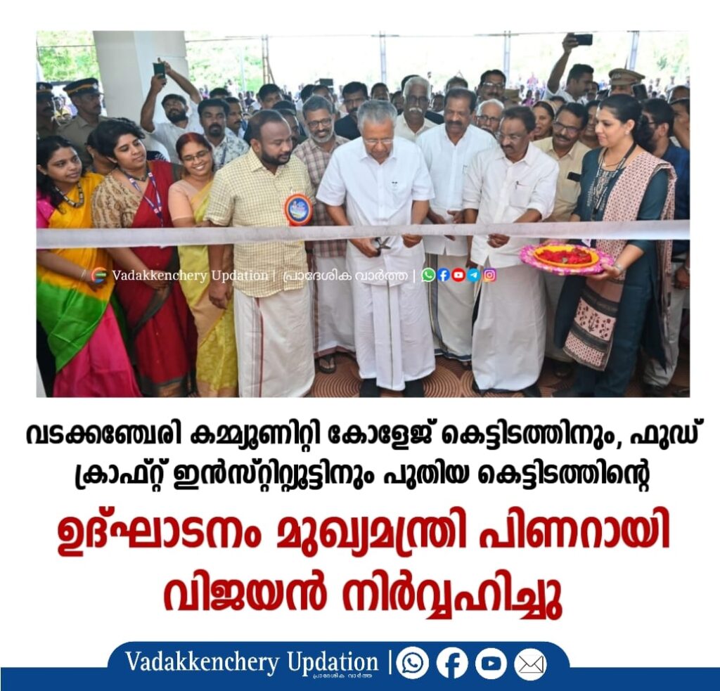 വടക്കഞ്ചേരി കമ്മ്യൂണിറ്റി കോളേജ് കെട്ടിടത്തിനും, ഫുഡ് ക്രാഫ്റ്റ് ഇൻസ്റ്റിറ്റ്യൂട്ടിനും പുതിയ കെട്ടിടത്തിൻ്റെ ഉദ്ഘാടനം മുഖ്യമന്ത്രി പിണറായി വിജയൻ നിർവ്വഹിച്ചു