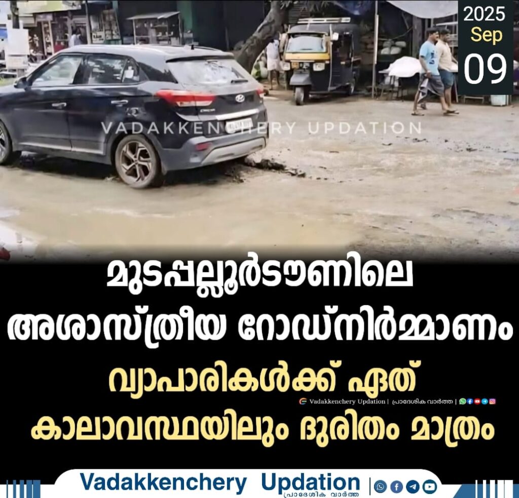 മുടപ്പല്ലൂർടൗണിലെ ആശാസ്ത്രീയ റോഡ് നിർമ്മാണം ;വ്യാപാരികൾക്ക് ഏത് കാലാവസ്ഥയിലും ദുരിതം മാത്രം