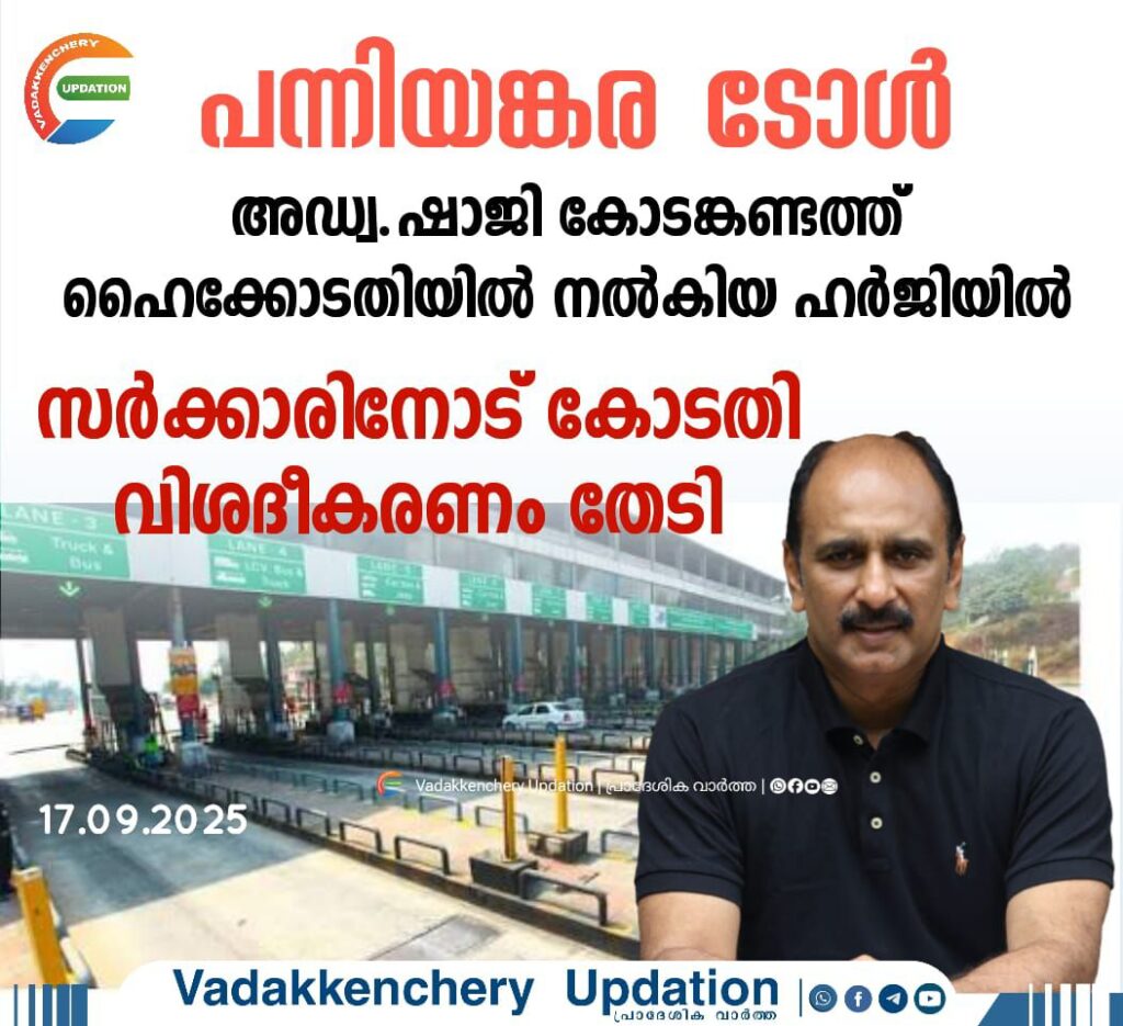 ഗതാഗതക്കുരുക്കും അടിപ്പാത നിർമാണവും മൂലം പന്നിയങ്കരയിലെ ടോൾ പിരിവ് താൽക്കാലികമായി നിർത്തിവയ്ക്കണം എന്നാവശ്യപ്പെട്ട് അഡ്വ.ഷാജി കോടങ്കണ്ടത്ത് ഹൈക്കോടതിയിൽ നൽകിയ ഹർജിയിൽ സംസ്ഥാന സർക്കാരിനോടു ഹൈക്കോടതി വിശദീകരണം തേടി അടുത്ത 24ന് പരാതിക്കാരുടെ ആരോപണങ്ങളുടെ നിജസ്ഥിതിയെക്കുറിച്ചു റിപ്പോർട്ട് നൽകാനാണു കോടതി ഉത്തരവ് വടക്കഞ്ചേരി-മണ്ണുത്തി ആറുവരി ദേശീയപാതയിൽ അടിപ്പാത നിർമാണം നടക്കുന്ന വാണിയംപാറ, കല്ലിടുക്ക്, മുടിക്കോട് ഭാഗങ്ങളിൽ ഗതാഗതക്കുരുക്ക് തുടരുന്ന സാഹചര്യത്തിലാണ് അഭിഭാഷകനും കോൺഗ്രസ് നേതാവുമായ ഷാജി കോടങ്കണ്ടത്ത് ഹർജി നൽകിയത്.